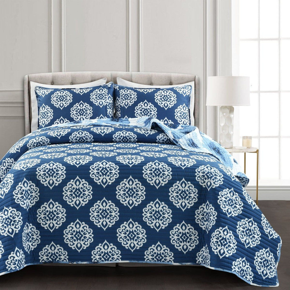 The Leah Quilt 3 Piece Set is reversible and features a more neutral medallion pattern on the back if you ever want to change up the look in your room.
