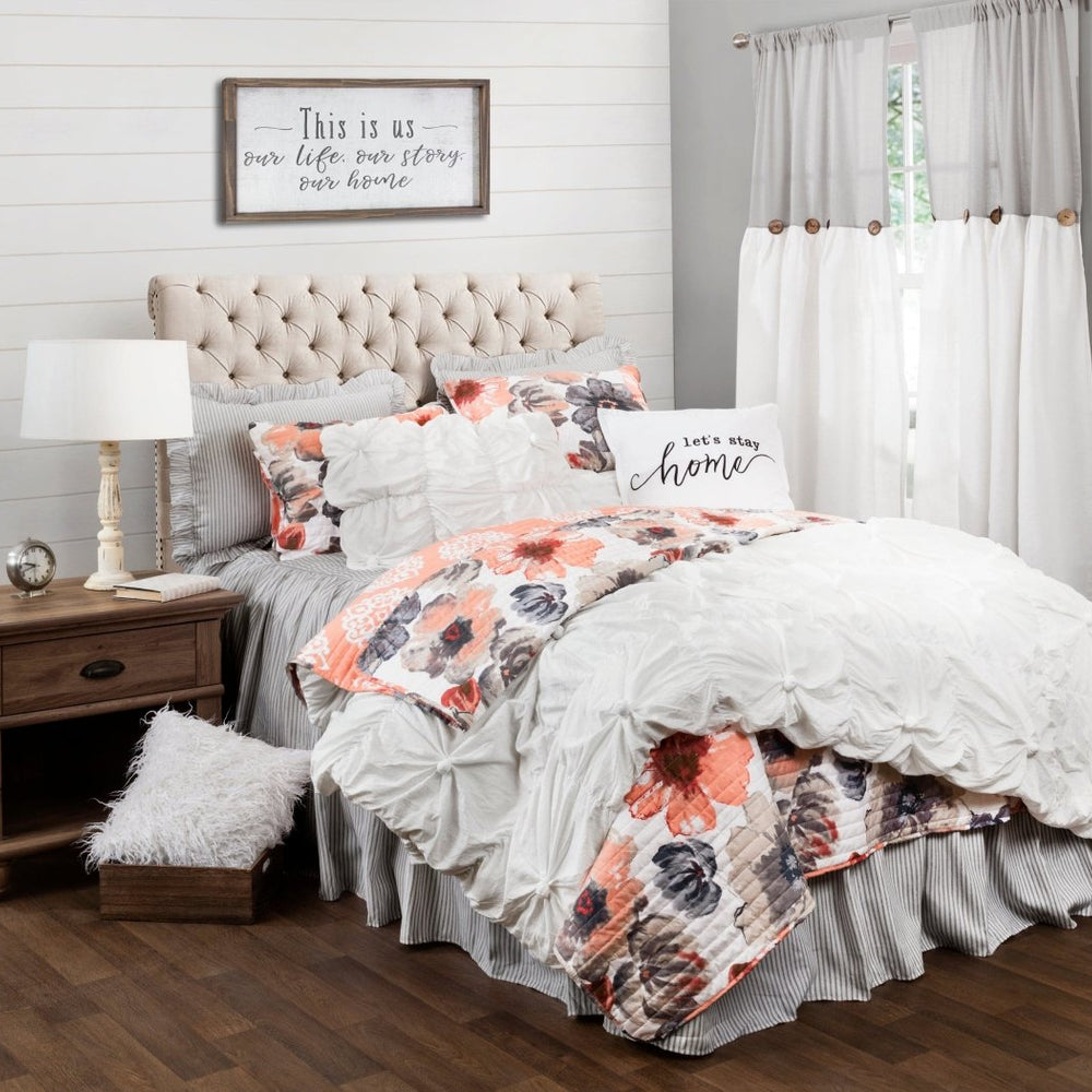Add energy and life to your bedroom with our Leah Quilt 3 Piece Set. The eye popping flowers add elegance and fun to a master bedroom or a guest bedroom. This floral quilt set will compliment nearly any design style.