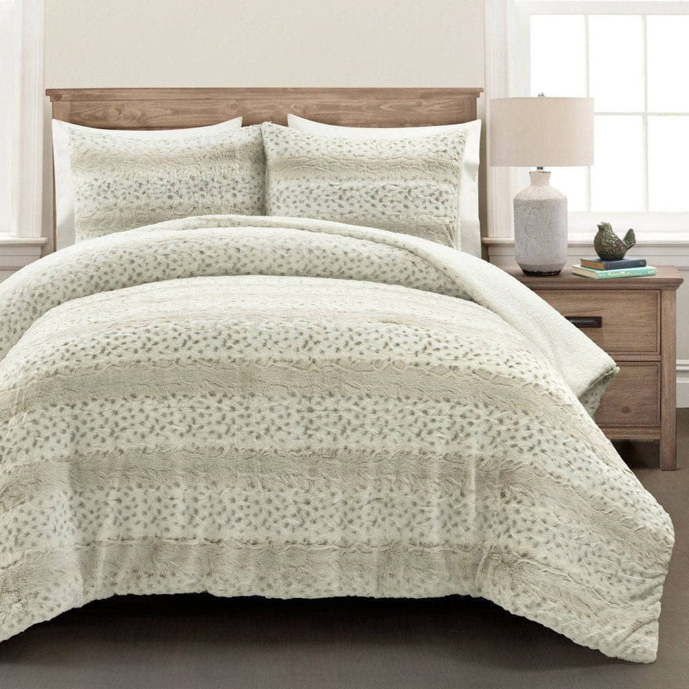 Enjoy every night in luxurious comfort with this decorative Leopard Textured Faux Fur Comforter 3 Piece Set. With a plush faux fur front and soft sherpa reverse, there's no other bedding to keep you so cozy and relaxed.