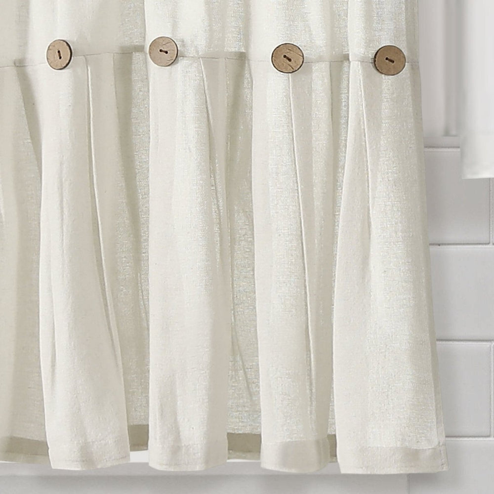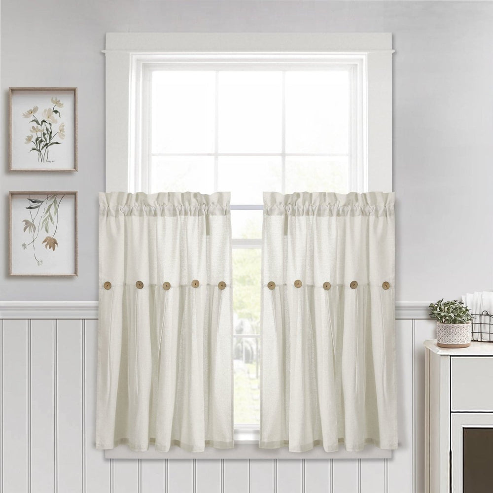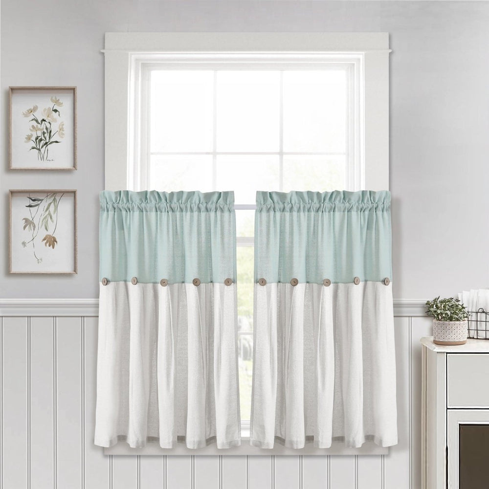 Linen Button Kitchen Window Tiers Set with rustic button detailing and color blocking.