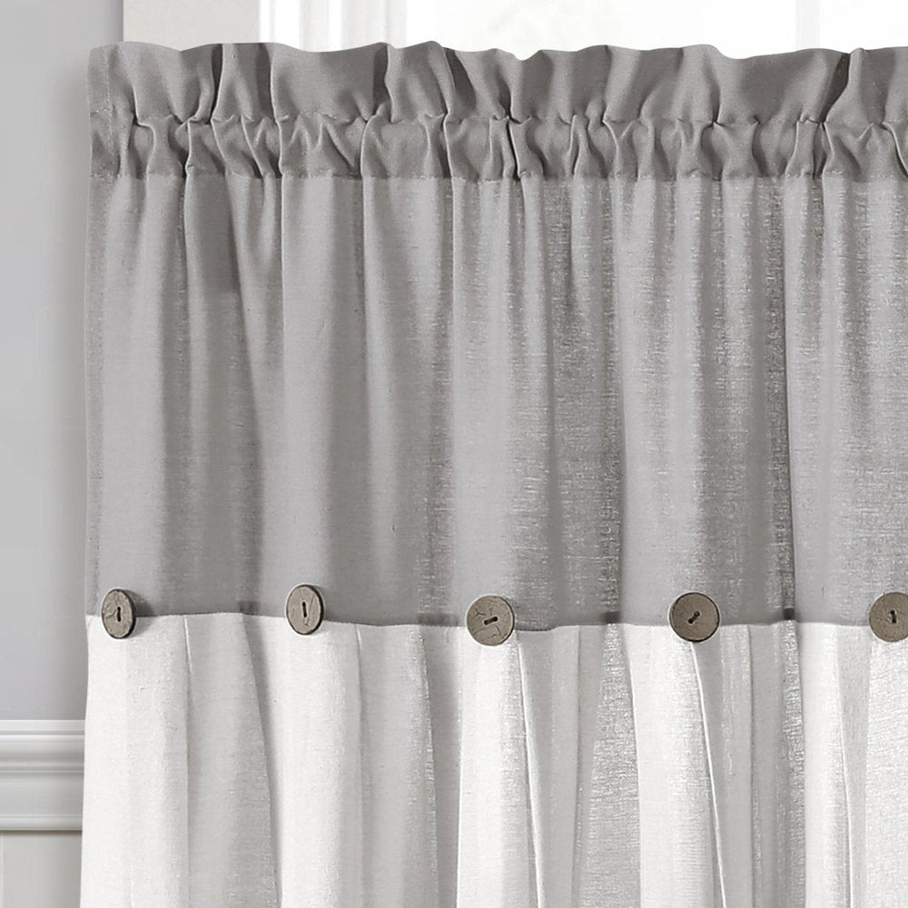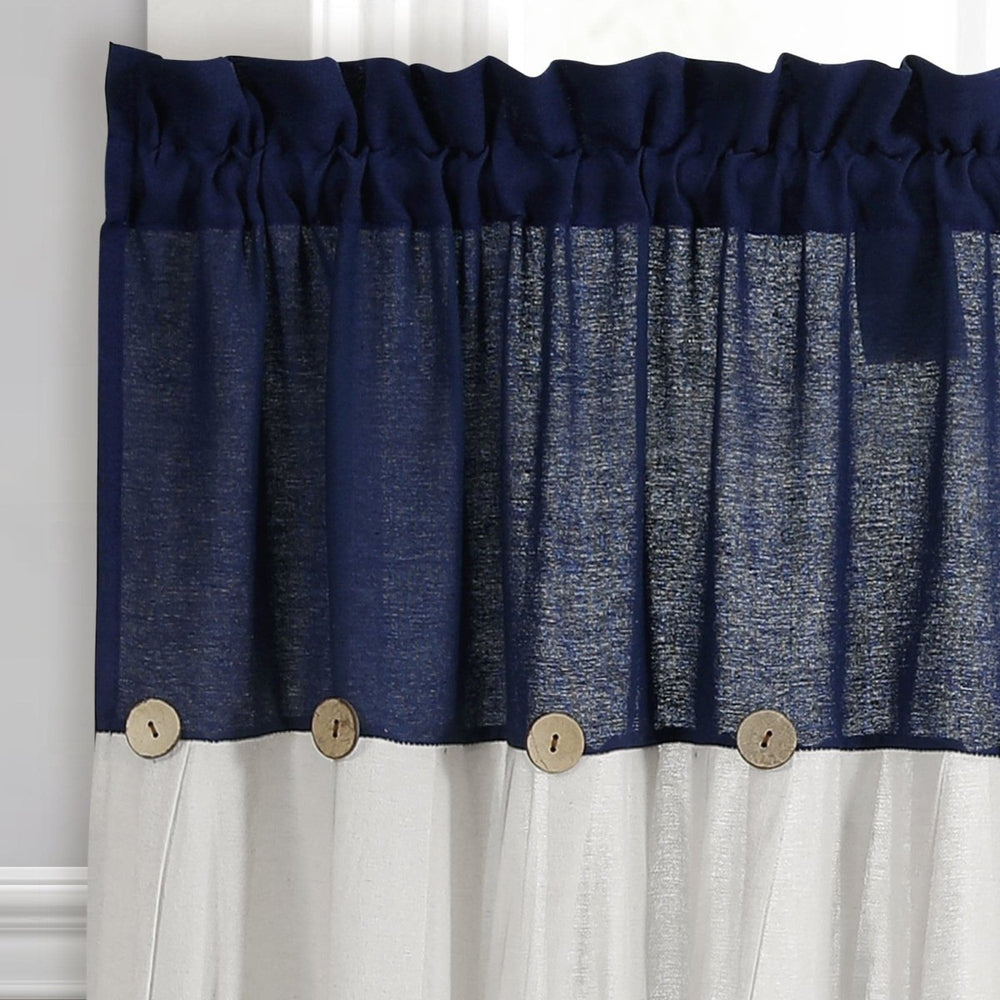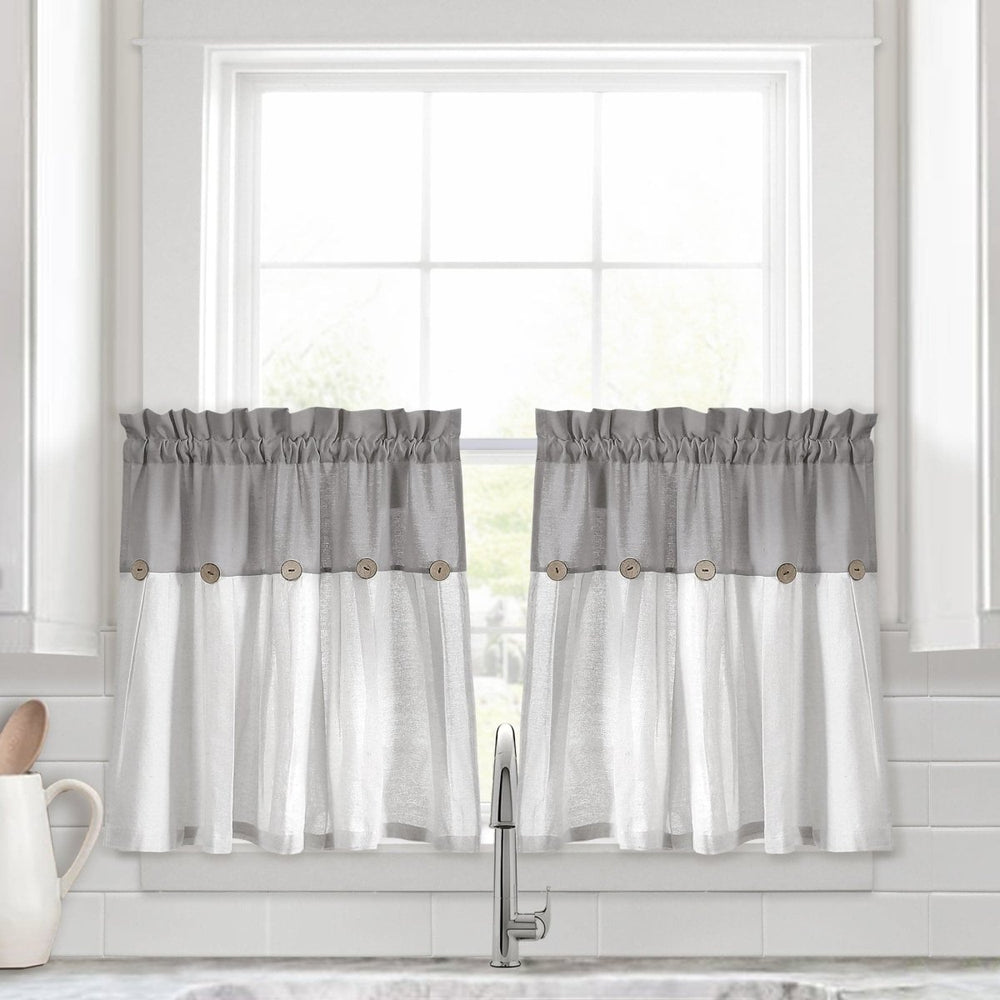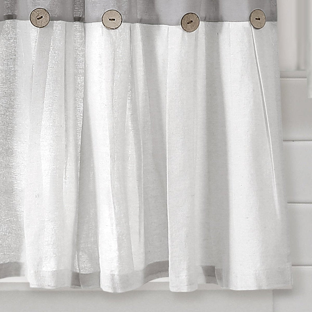 Linen Button Kitchen Window Tiers Set with rustic button detailing and color blocking.