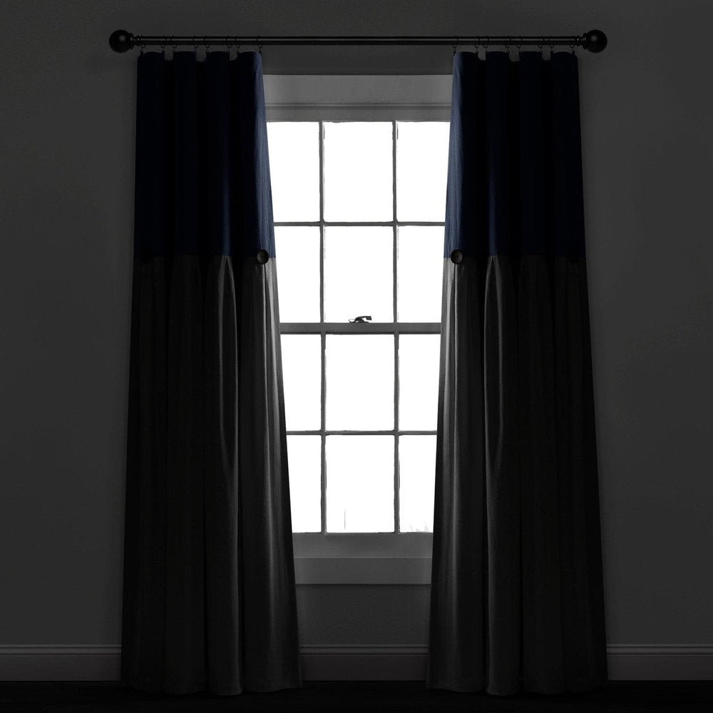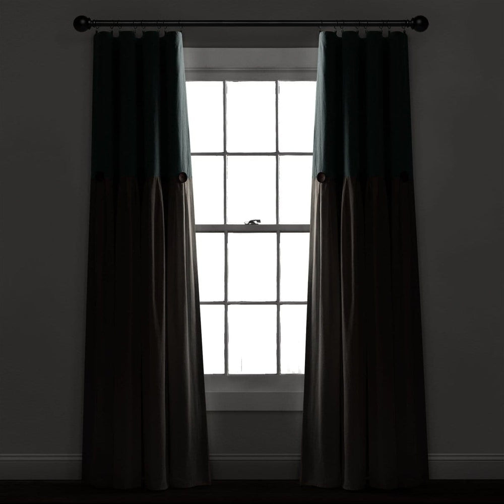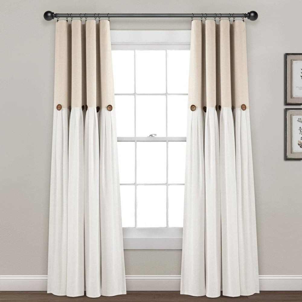 Add the linen look to your home with these classic farmhouse styled blackout curtains. Pleats and buttons complete the cozy look of this Linen Button Lined 100% Blackout Window Curtain Panel. Slight weave variations are authentic to this natural fiber blend and create a one-of-a-kind look. This stunning panel is available in solid color choices as well as two-toned color block styles.
