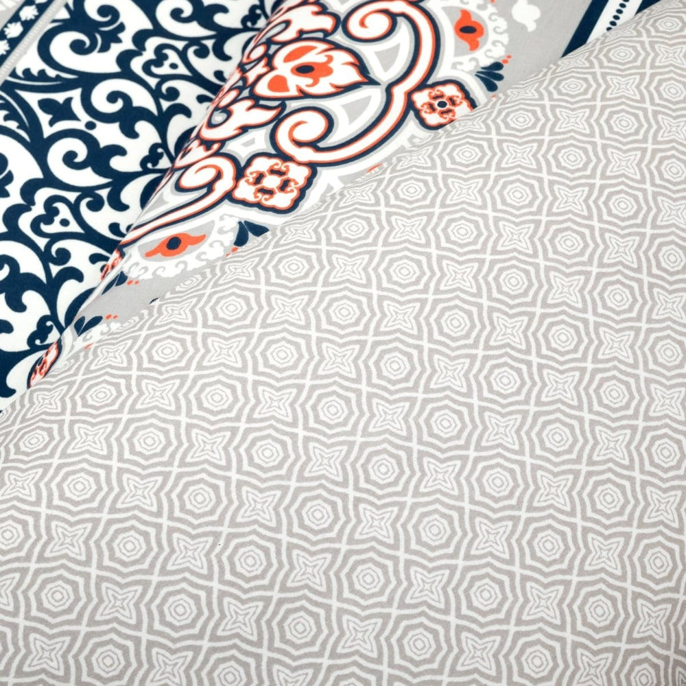 High in versatility, this printed Nesco Stripe Cotton Duvet Cover 3 Piece Set suits just about any bedroom style. The complementing colors bring a satisfying balance to your space. Feature the front pattern in a boho bedroom or the back pattern in a traditional design.
