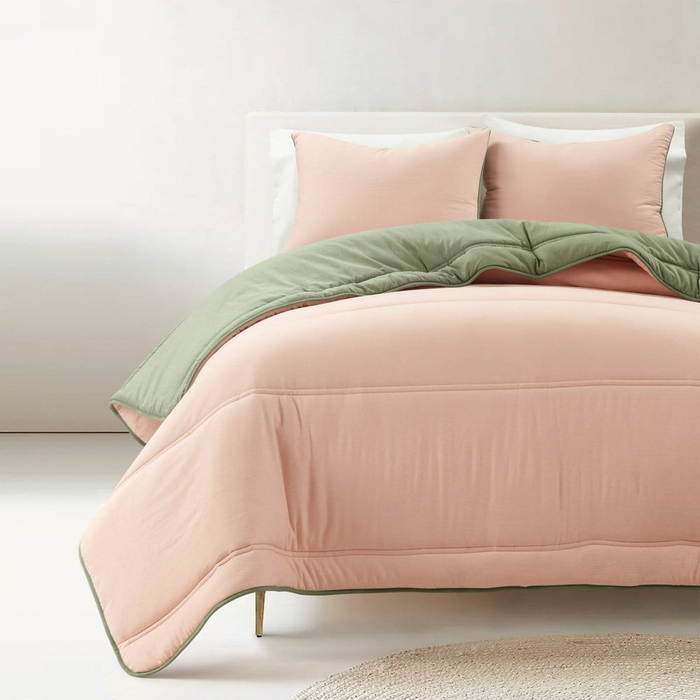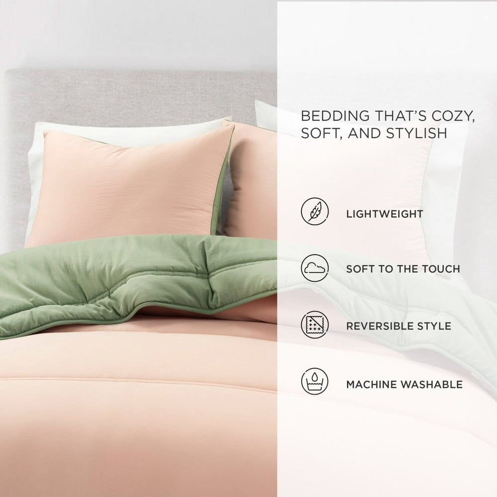 This Oslo Soft Reversible Quilted Comforter Set includes 1 reversible quilted comforter and matching standard pillow shams (1 for Twin XL, 2 for larger sizes). This microfiber bedding set offers softness and breathability. The polyfill is so soft and light as air, perfect for hot sleepers or great as an extra layer for those cold sleepers who layer-up to keep warm.