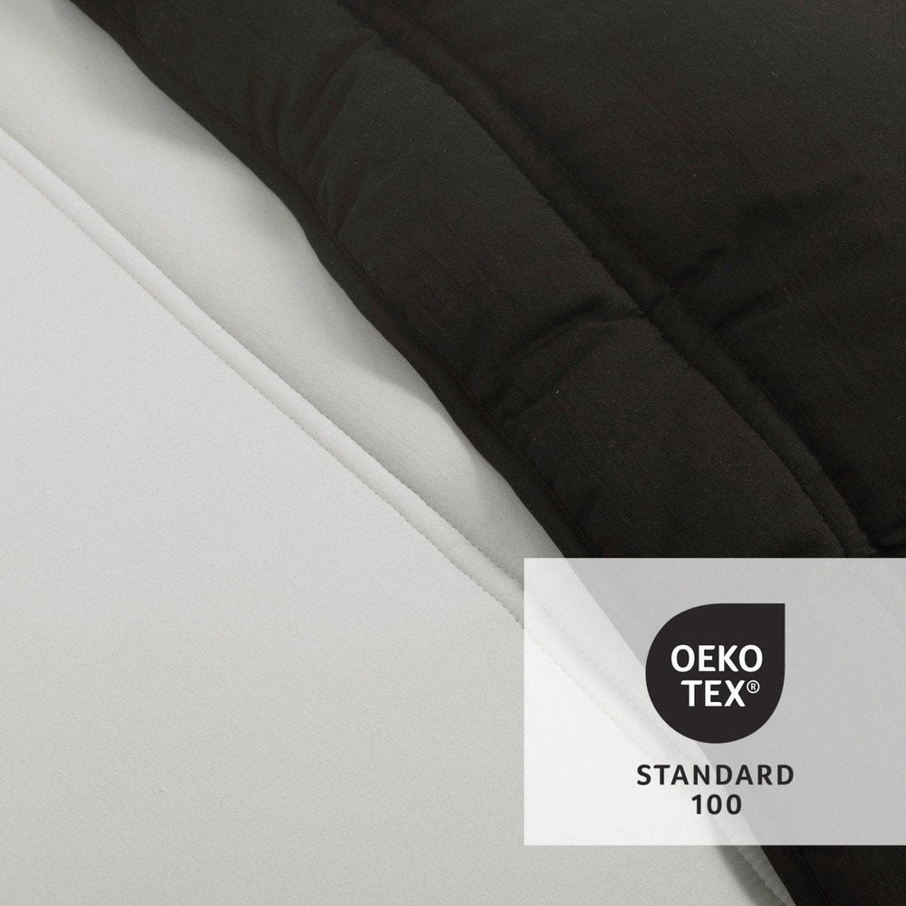This Oslo Soft Reversible Quilted Comforter Set is STANDARD 100 by OEKO-TEX® certified, which means the fabric, dyes and all components have been tested in an independent laboratory and certified against a list of more than 350 harmful substances. To care for this bedding set we recommend dry clean only. Please refer to label for full care instructions.