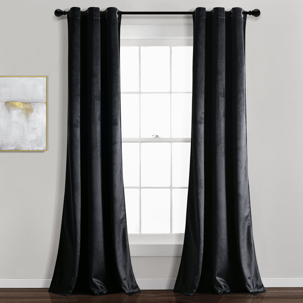 Prima Velvet Solid Grommet Light Filtering Window Curtain Panel Set