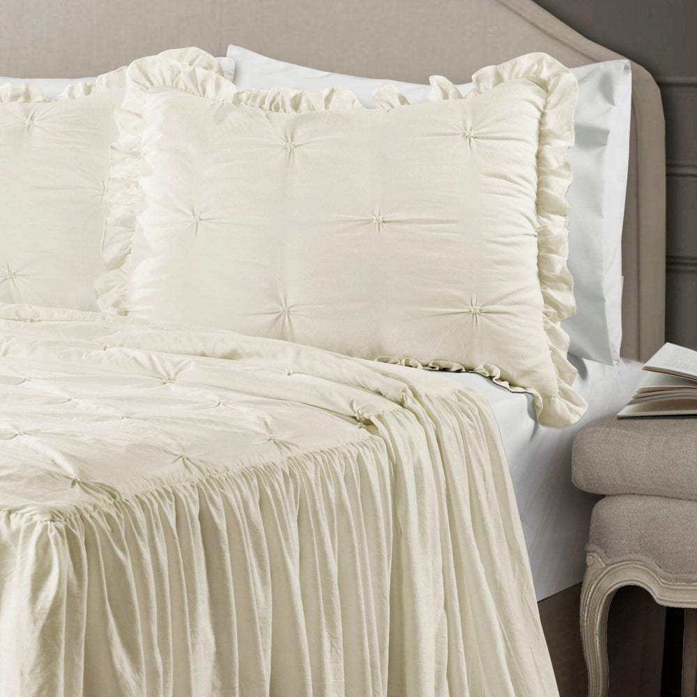 This beautiful Ravello Pintuck Ruffle Skirt Bedspread Set is soft and luxurious feeling with hand tucking detail on crinkle Microfiber and elegant ruffled edges. It fits in nicely with your farmhouse, minimalist or traditional bedroom.