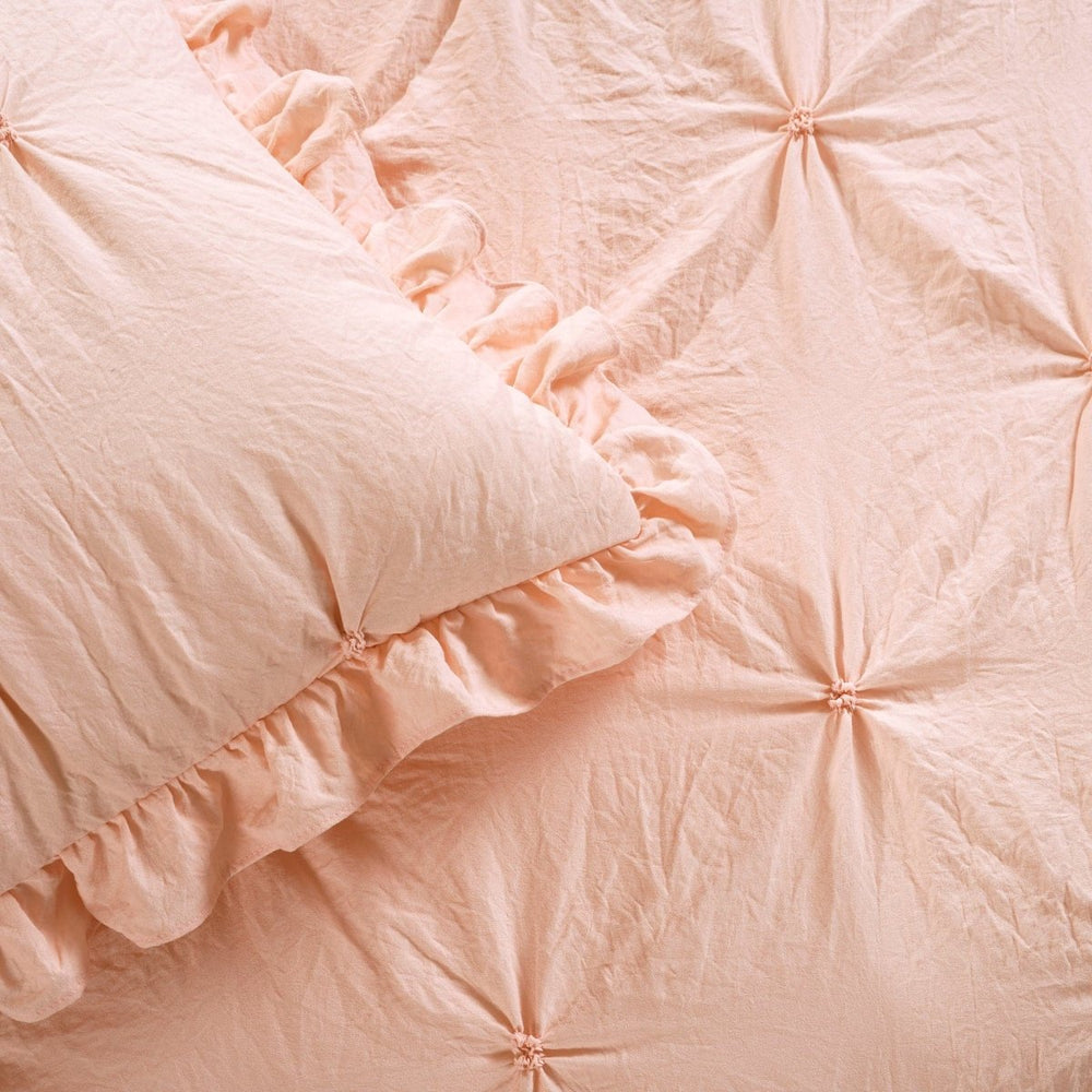 Due to the delicate nature of the ruffles and pintuck detail, we highly recommend that you dry clean the bedspread and shams.
