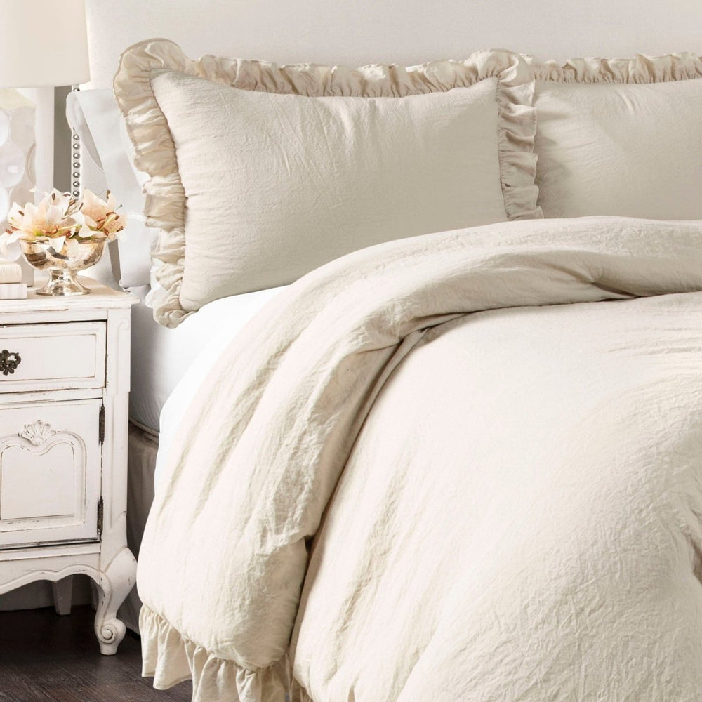 New from the Reyna Collection is this beautiful comforter set with a frilly ruffled border which will brighten any bedroom. This set is perfect for the lovers of minimalist, farmhouse, boho or shabby chic design styles.