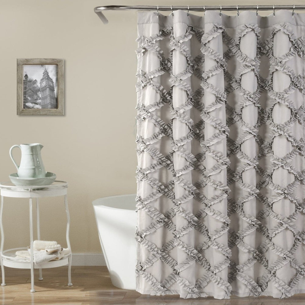 Your bathroom will look absolutely incredible with our Ruffle Diamond Shower Curtain. It will immediately enhance the look of the master bathroom or guest bathroom. The fancy and frilly ruffle detail adds a feminine touch as well as eye-catching texture to instantly brighten the look of your space.