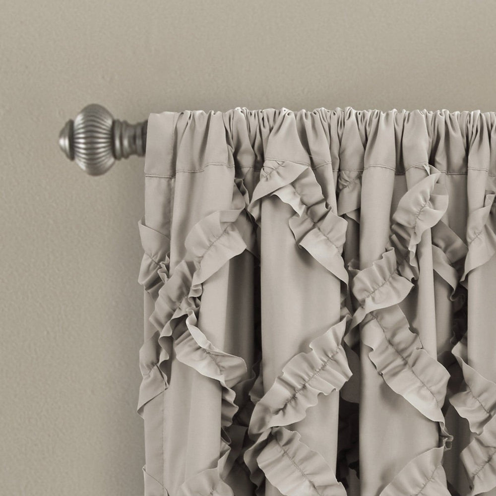 Our Ruffle Diamond Window Curtain Set has no lining, which allows more natural light to enter the room. Installation is easy with a three-inch rod pocket, giving you two great options. Simply slide the panels onto the curtain rod, or hang them with clips from the curtain rod.