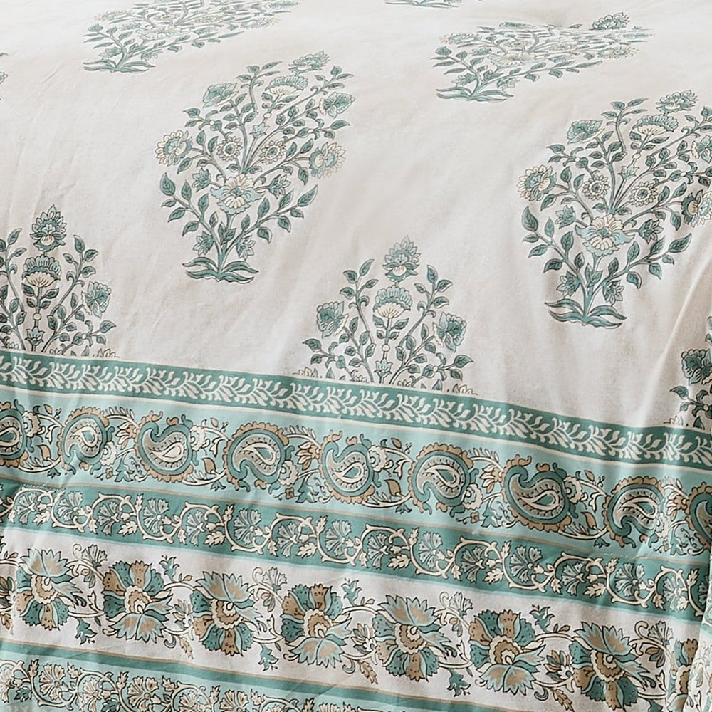 Add this charming floral comforter set to your bedroom. Adorned with flower bouquets and block prints, it effortlessly blends boho and vintage styles. Crafted from 100% cotton fabric with a medium weight polyfill. This fully styled 8 piece bedding set includes 1 comforter, 1 platform bed skirt with a 15-inch drop, 2 shams, 2 euro shams, and 2 decorative throw pillows. STANDARD 100 by OEKO-TEX® certified, all components have been tested and certified free from harmful substances. Machine washable.