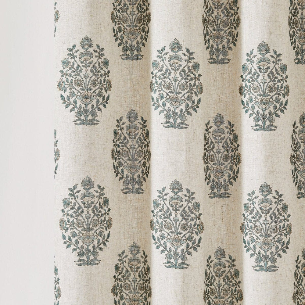 Add charming florals to your bathroom with this block print shower curtain. Featuring a classic floral design with blooming flower bouquets and contrasting floral block prints along the trim, it perfectly complements vintage or coquette style homes. Crafted from a linen blend fabric for a natural texture. Sold as a single shower curtain and measures 72 inches wide by 72 inches long. Installation is easy with 12 button holes at the top to hang with shower hooks or rings. Pair this fabric shower curtain with a liner, sold separately. Machine washable for easy care.