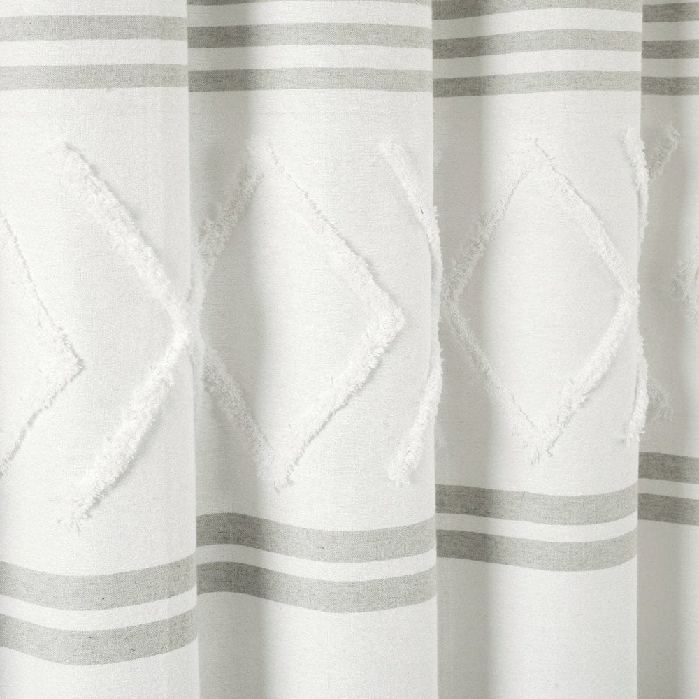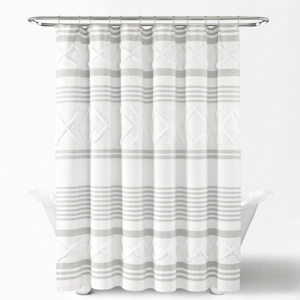 Take your bathroom from drab to fab with this super stylish Urban Diamond Stripe Woven Tufted Recycled Cotton Shower Curtain. Made of eco-friendly recycled cotton, this textured decorative curtain is a quick and simple way to add tons of chic style to your primary or guest bathroom.