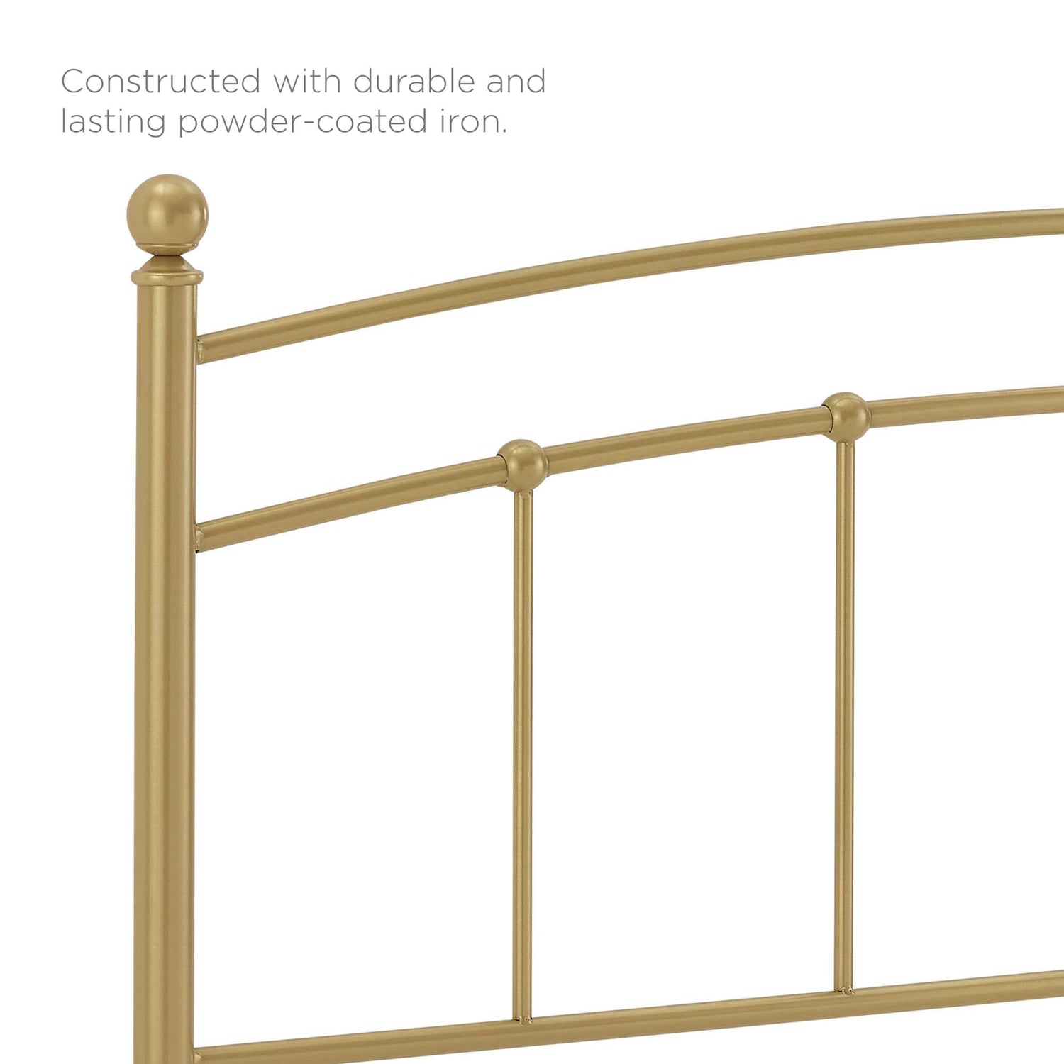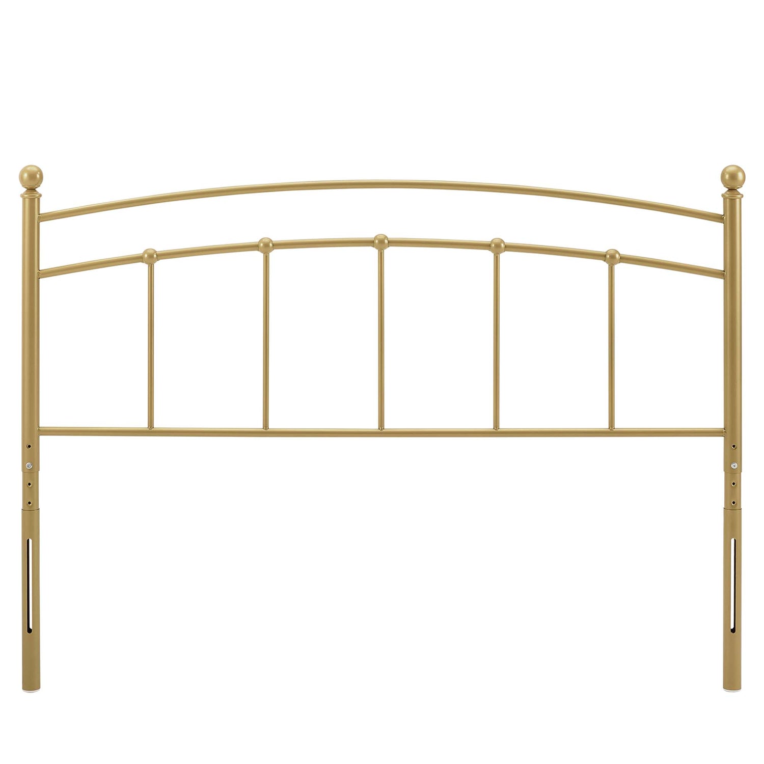 Introduce charming modern farmhouse style to a teenager's bedroom or guest room with the Abigail Metal Full Headboard. Bringing vintage modern appeal and rustic style to a space, this metal headboard creates a neutral backdrop for a variety of bedding choices. Featuring an arched shape, spindle detail, and finials, this full size headboard is crafted with durable powder-coated iron for a lasting construction. This height adjustable headboard is complete with seven different mounting positions allowing it to fit most full bed frames. Assembly Required.