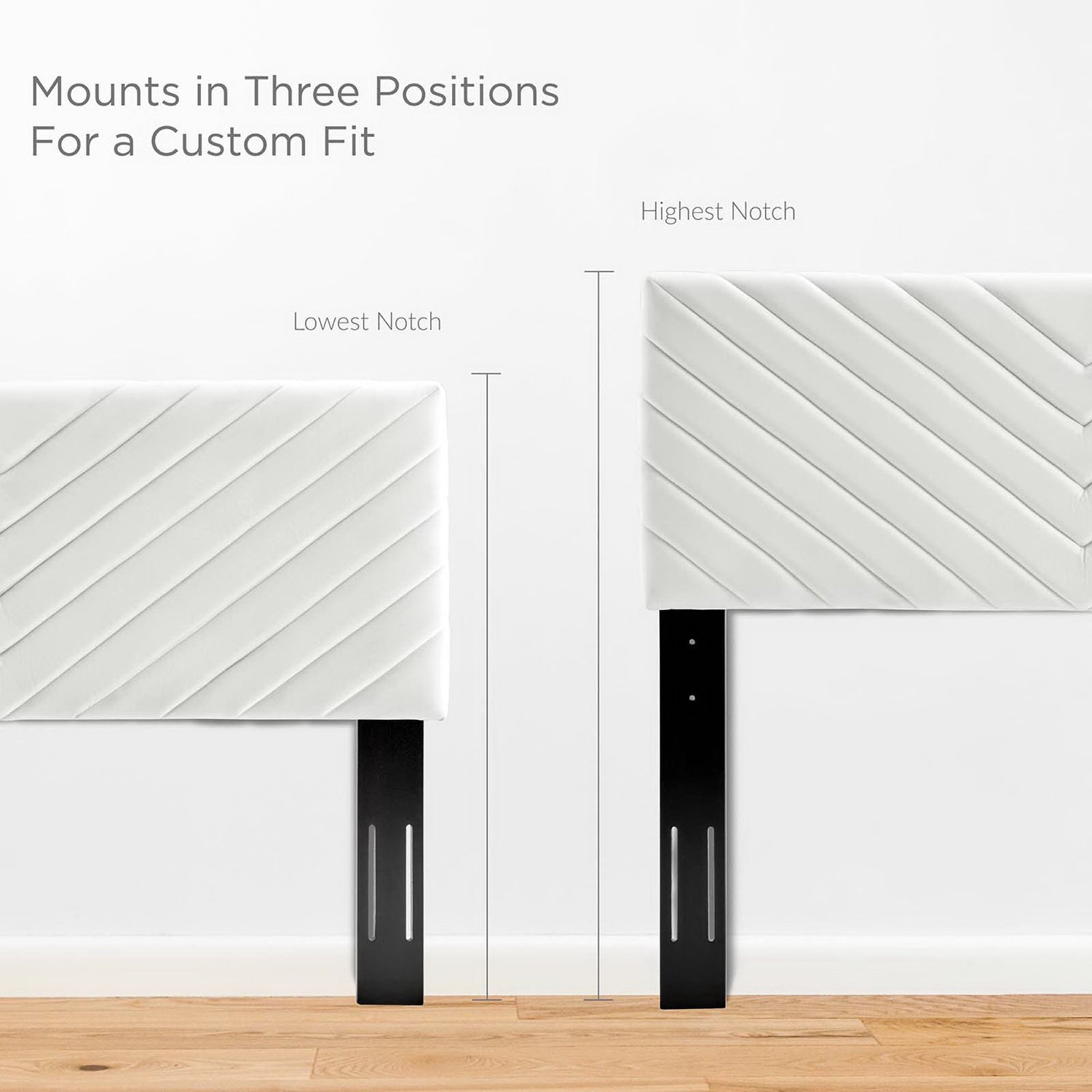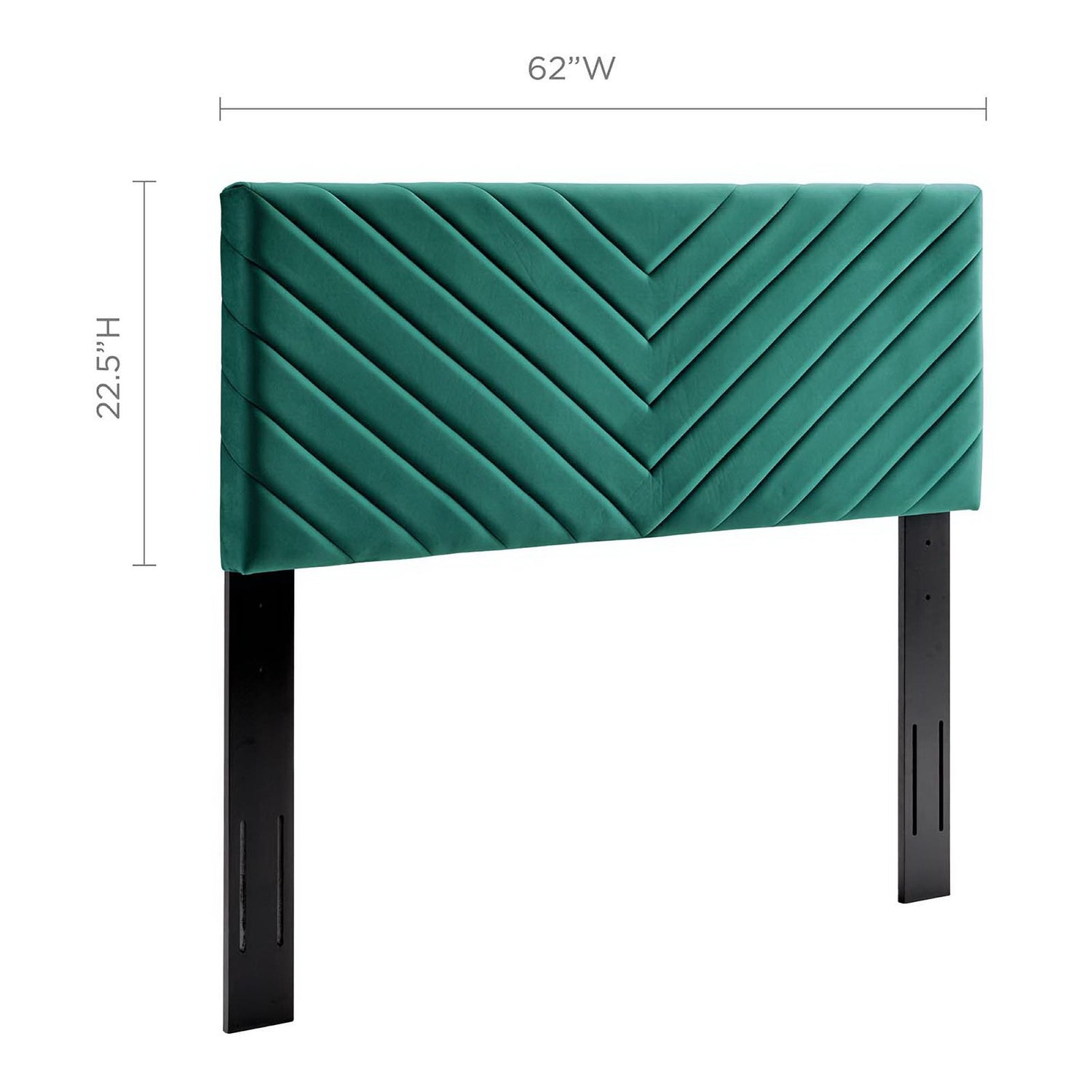Update your bedroom with elegant decor with the Alyson Full/Queen Chevron Tufted Performance Velvet Upholstered Headboard. With a squared profile, this full/queen headboard grants a luxurious presence to your bedroom with chevron pattern tufting accents and rich texture. Covered in soft, stain-resistant performance velvet upholstery Alyson Queen/Full Headboard is both practical and graceful. Ideally suited for guest rooms, teen, and master bedrooms, the Alyson Full or Queen Headboard is made from solid wood and particleboard and features dense foam padding for luxe comfort when reclining, reading, or watching TV in bed. This upholstered headboard fits most full or queen size beds and has three height-adjustable positions for customization.