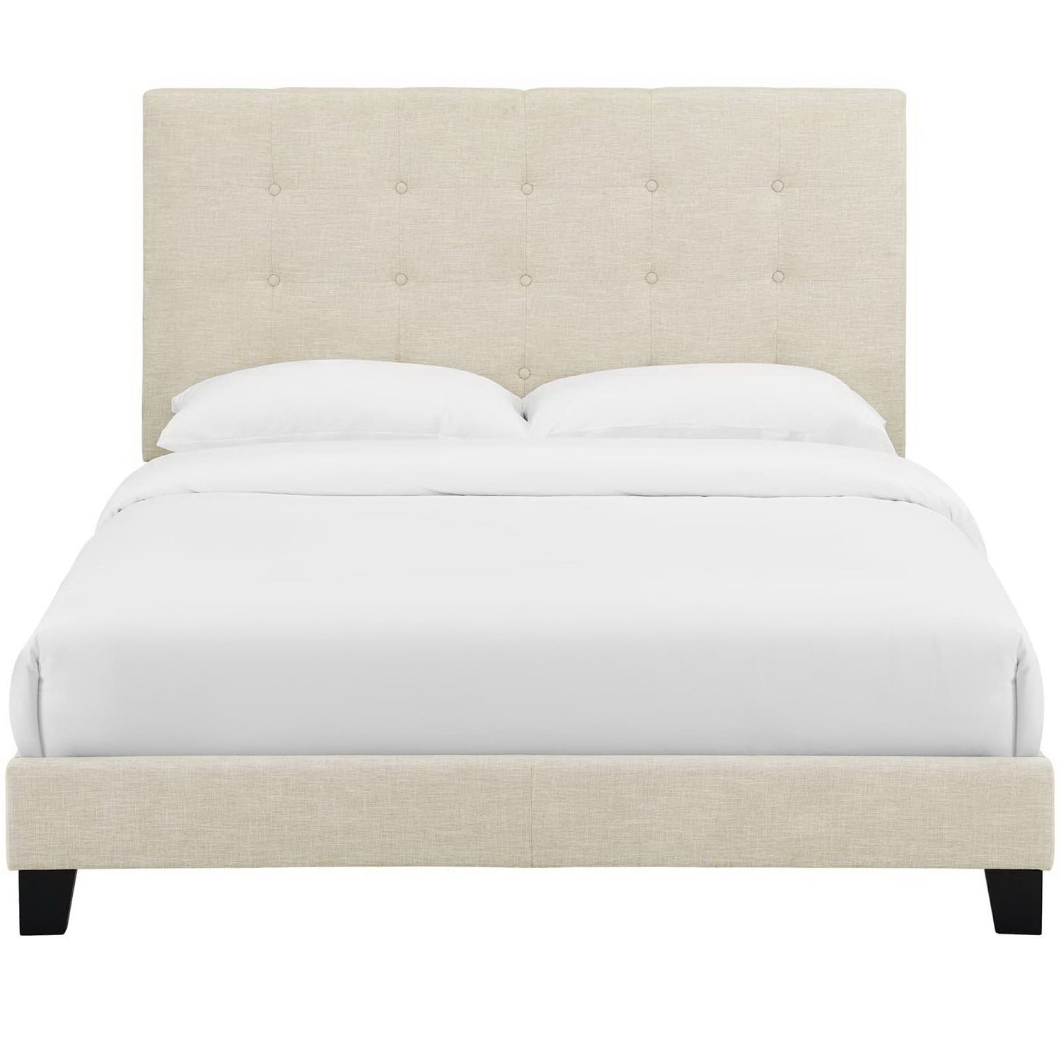 Clean lines, a straightforward profile, and classic button tufting define the Melanie Queen Platform Bed. Designed with chic elegance and contemporary style, Melanie's base and headboard come upholstered in soft polyester fabric, while the sturdy wood frame and legs offer lasting durability. Eliminating the need for a box spring, this platform bed is complete with a wood slat support system and reinforced center beam creating the perfect mattress foundation for memory foam, spring, latex, and hybrid mattresses. A sleek and sophisticated centerpiece to a master suite or guest room, effortlessly transform bedroom decor with the luxe look of this modern platform bed. Includes non-marking foot caps. Bed Weight Capacity: 800 lbs.