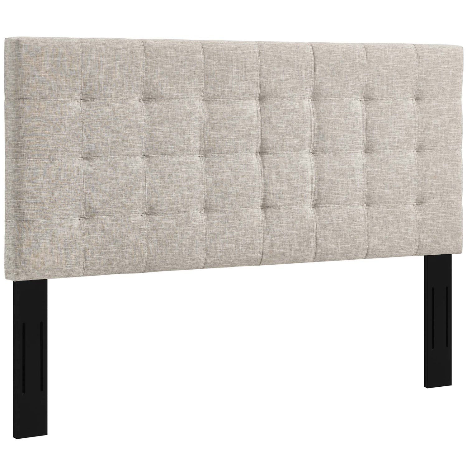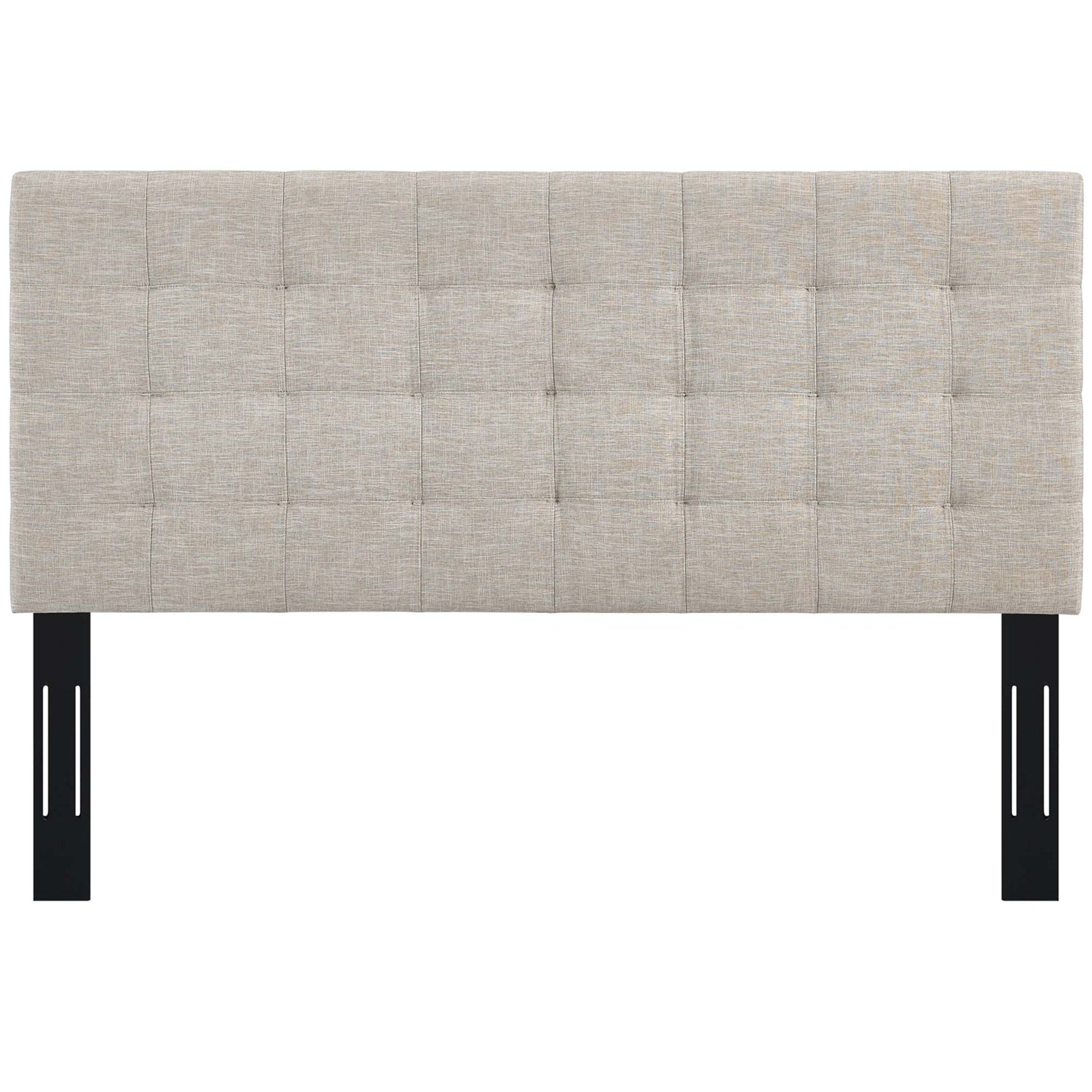 Enjoy simple elegance with the square-patterned design of Paisley. Featuring timeless biscuit tufting, Paisley updates the guest bedroom or master suite with charming appeal. A stylish king or Cali / California king headboard, Paisley is made of soft upholstered linen fabric covering a durable fiberboard and plywood frame with dense foam padding. Solidly constructed with extra wide black-stained wood post legs that fit either king or California king bed frames, choose from three mounting positions with this tall, padded headboard that ranges from 46 - 54 inches in height. The Paisley king or Cali / California king headboard is a lavish addition that offers quality support while reclining and relaxing.