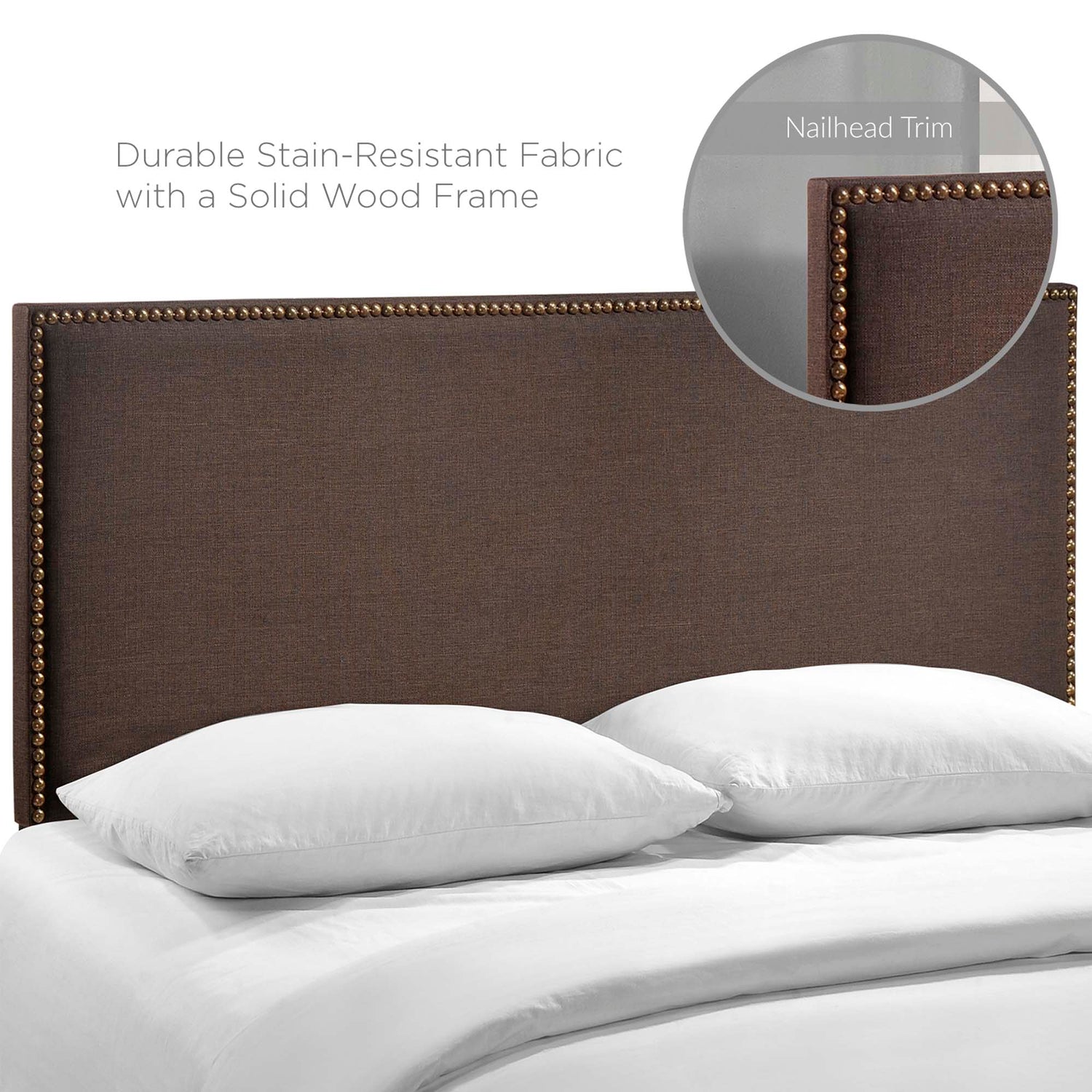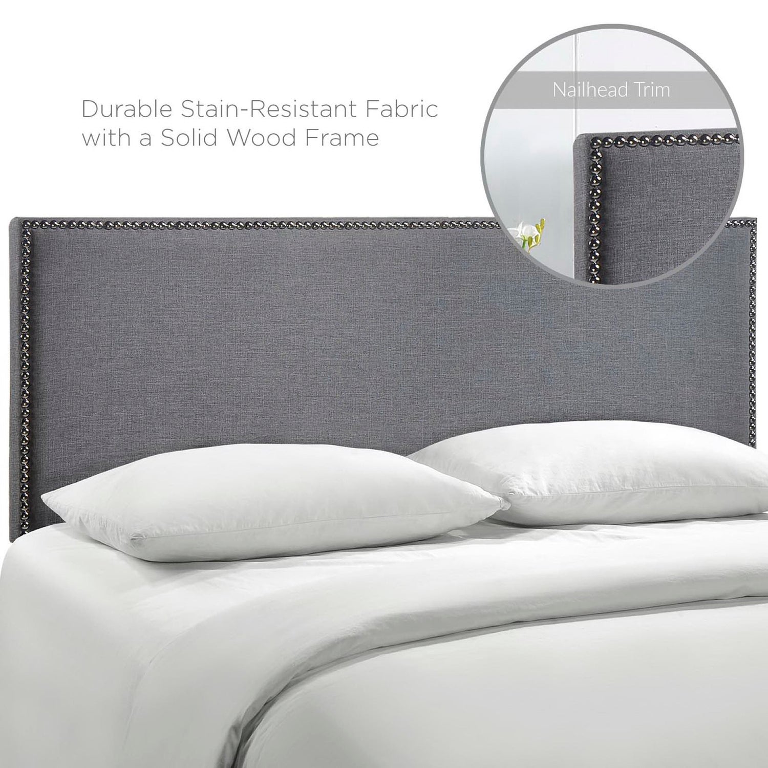 Enhance your bed of choice with a spaciously designed Modway Region Linen Fabric Upholstered Queen Headboard. Region Queen Headboard captures the expansive moments of restful nights with an elegance that doesnt detract from the simplicity of the design. Made of particleboard with solid wood poles and fine linen fabric upholstery, and stylish nailhead trim, rejoice with a contemporary design that admirably complements your contemporary decor and most queen beds.