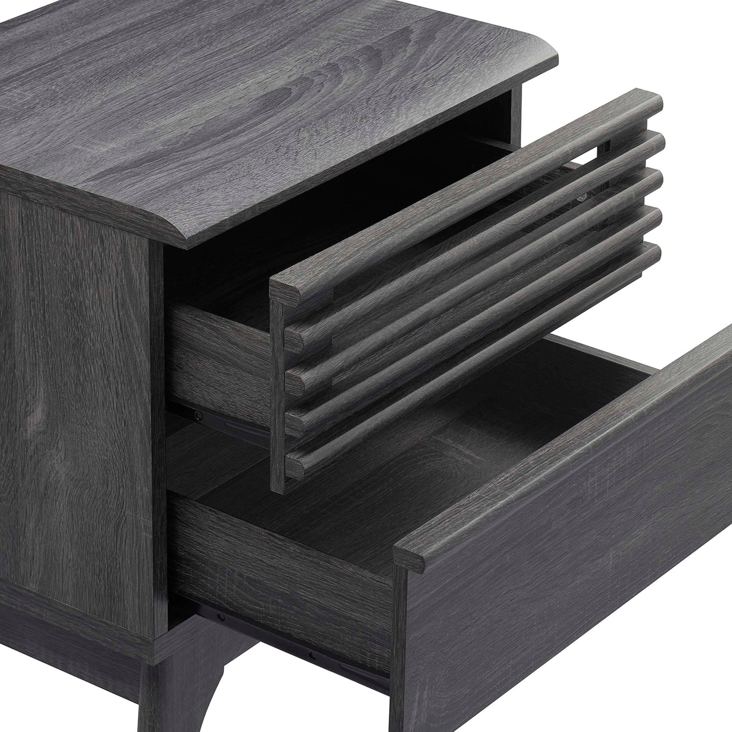 Tap into mid-century aesthetics with the Render Nightstand. With dual usage as an end table in the living room, this nightstand features a durable particleboard frame with a smooth wood grain laminate, four tapered wood legs, and two full-extension glide drawers. Boasting a mid-century modern style this accent table features a solid construction with a pleasing look and practical functionality that's perfect for the bedroom. Two full-extension drawers offer ample storage space to keep your bedside essentials neat and organized.