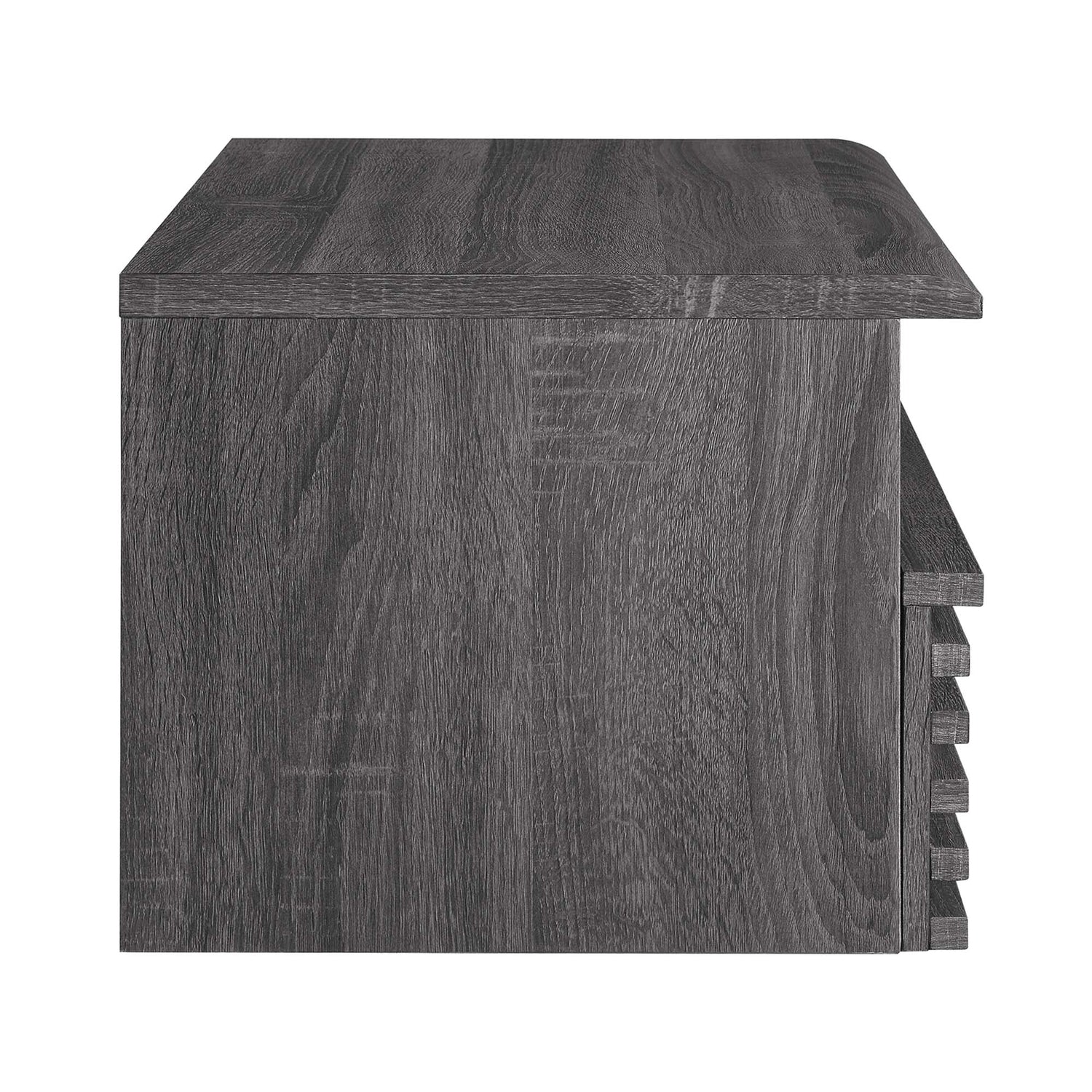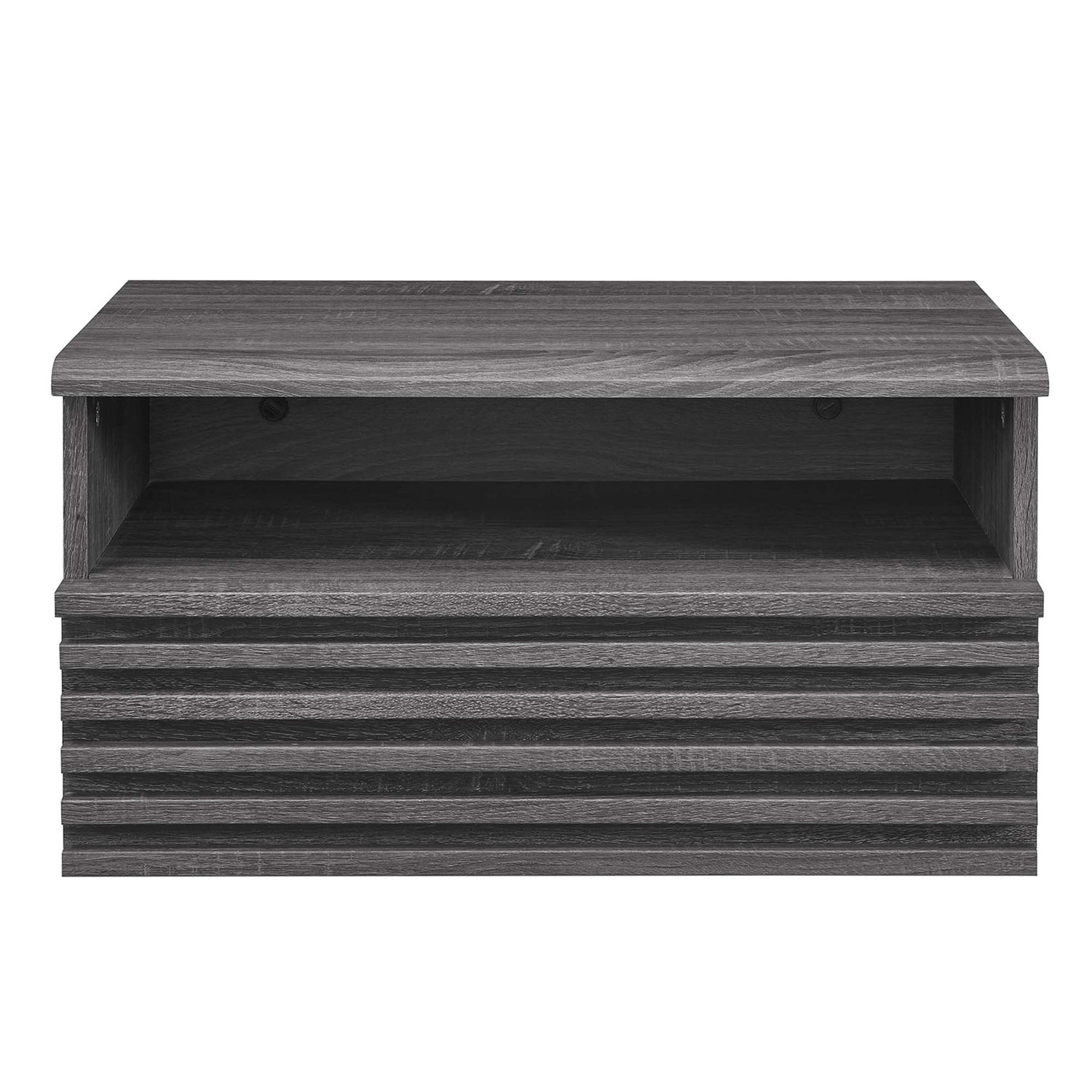 Tap into mid-century aesthetics with the Render Wall-Mounted Nightstand. Detailed with a slatted design, this nightstand features a durable particleboard frame with smooth wood grain laminate and a full-extension glide storage drawer. Boasting a mid-century modern style, this bedside table features a solid construction with a pleasing look and practical functionality that's perfect for the bedroom. A full-extension drawer offers ample storage space to keep your bedside essentials neat and organized. Assembly required.