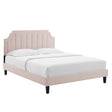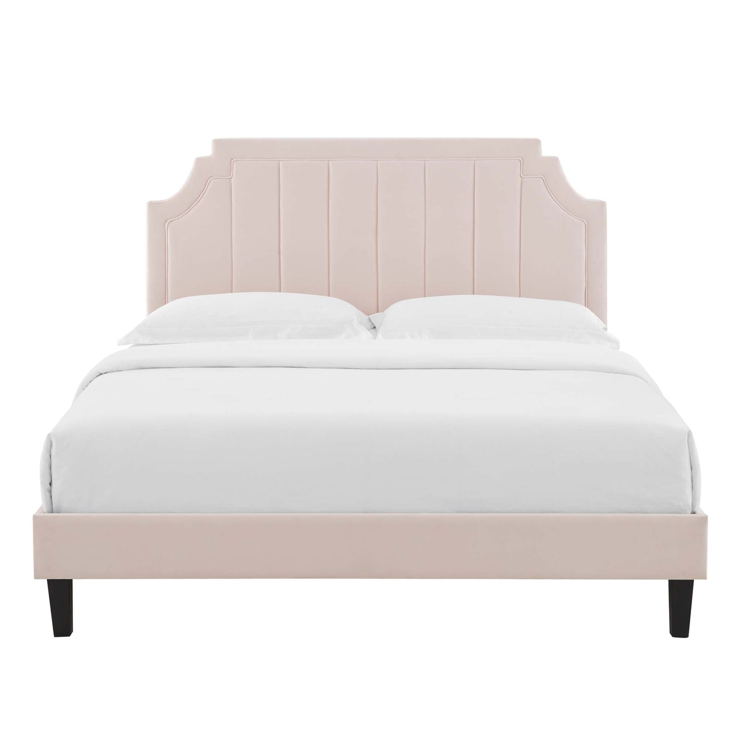 Bring vintage modern elegance and glam deco style to a kid's bedroom or guest bedroom with the Sienna Performance Velvet Twin Platform Bed. Featuring vertical tufting, a unique silhouette, and luxurious texture, the padded headboard of this twin size bed offers supportive comfort while relaxing in bed. Covered in stain-resistant performance velvet, this upholstered bed is a sturdy mattress foundation for memory foam, innerspring, latex, and hybrid mattresses. Eliminating the need for a box spring, the MDF frame of this platform bed is complete with a wood slat support system crafted with poplar for lasting durability and support. This slatted bed frame rests on black wood legs with non-marking foot caps and includes a reinforced center beam with two support legs for enhanced stability. Assembly required. Twin Bed Weight Capacity: 800 lbs.