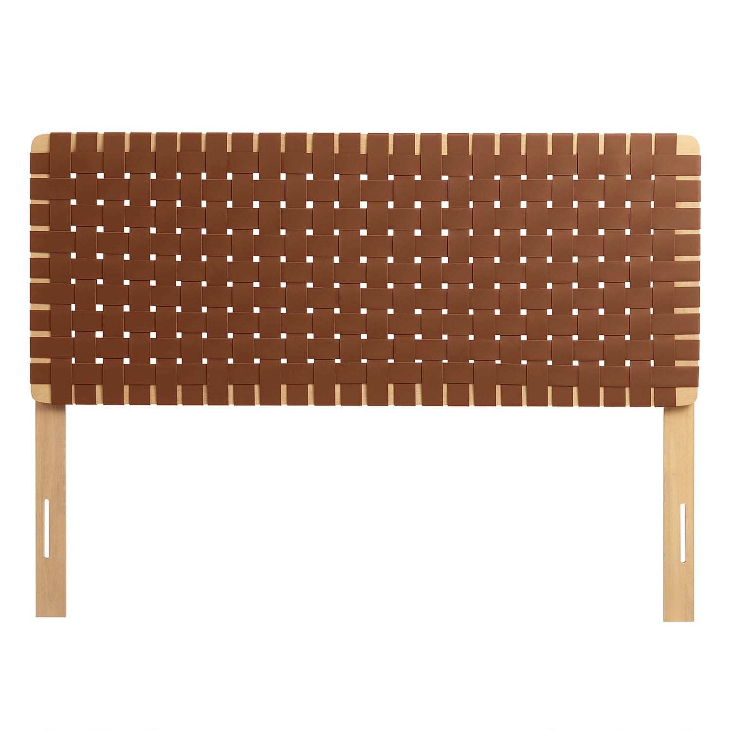 Elevate your bedroom's ambiance with the Sparta Vegan Leather Weave Full Headboard, a perfect blend of robustness and artistic flair. Constructed meticulously with a solid wood frame, this full size headboard introduces enduring stability and a touch of organic aesthetics. The standout feature is its basket woven vegan leather craft, adding a unique dimension and a tactile texture that captivates the eye. Perfect for a teenager's bedroom, guest room, or small primary bedroom, the Sparta Headboard offers a standing design with 5 mounting positions. This adaptability makes the full bed headboard an ideal fit for any bedroom space. The fusion of durability, style, and versatility makes this full bed headboard a distinguished choice for those seeking to infuse their sleeping space with sophistication and elegance. Assembly Required.