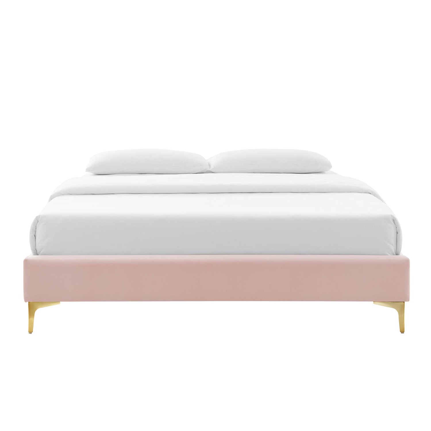 Uplift your master bedroom or guest bedroom decor with the Sutton Performance Velvet Twin Bed Frame. A Twin size bed frame covered in stain-resistant performance velvet, this upholstered bed frame is a sturdy mattress foundation for memory foam, innerspring, latex, and hybrid mattresses. Eliminating the need for a box spring, the MDF frame of this Twin bed is complete with a wood slat support system crafted with poplar for lasting durability and support. This slatted bed frame rests on gold metal legs with non-marking foot caps and includes a reinforced center beam with two support legs for enhanced stability. The Sutton Bed Frame is compatible with a variety of different headboard styles, or makes a statement as a stand-alone piece in the bedroom. Bed frame interchangeable with Paige, Alyson, Angela, Veronique, Evelyn, Dawn, Cecilia, Lucia, Rosalind, Delilah, Greta, Louisa, Eloise, Daisy, Sadie, Sloane, Fallon, and Lizzy. Mattress not included. Assembly required. Twin Size Bed Frame Weight Capacity: 800 lbs.