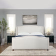 - Elegant wingback shelter headboard design enhancing bedroom decor