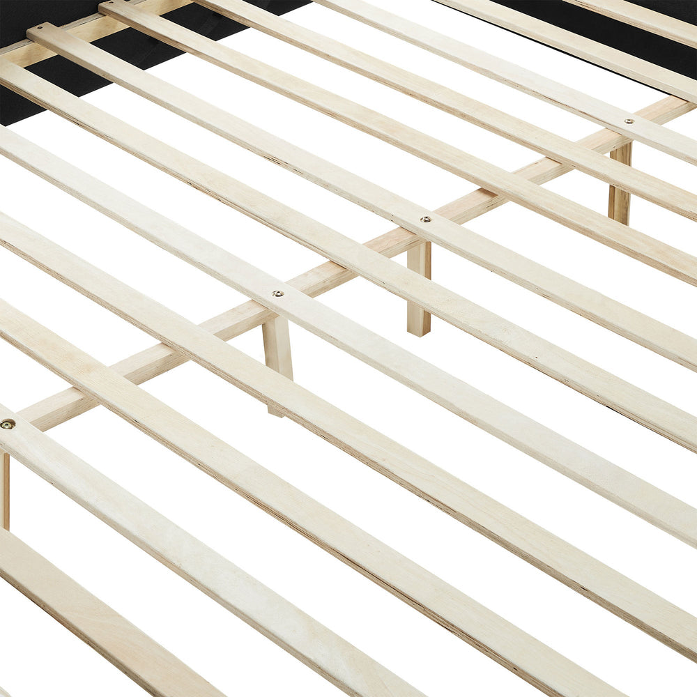 The Corduroy Upholstered Wingback Bed Frame offers a sophisticated addition to any bedroom. Featuring a wingback design with soft corduroy fabric, it blends comfort with timeless style while providing durable support without the need for a box spring.