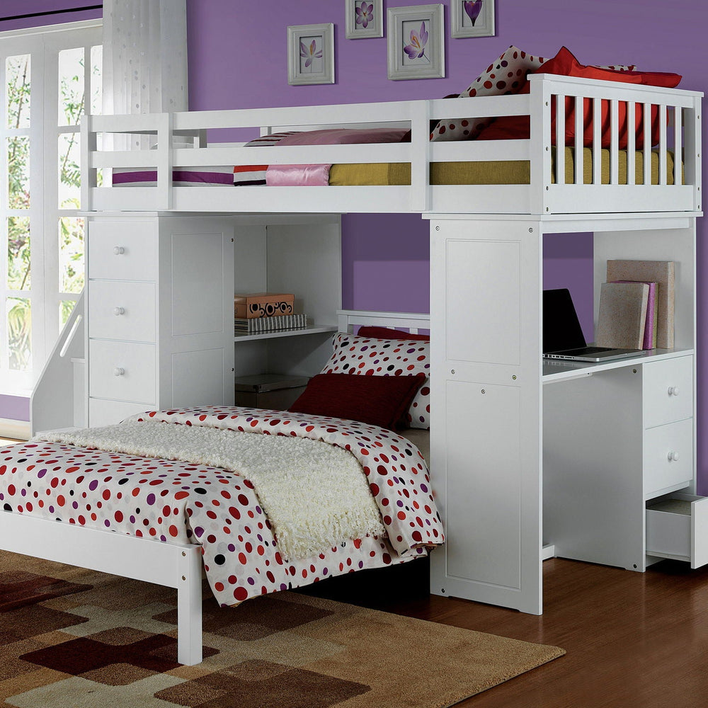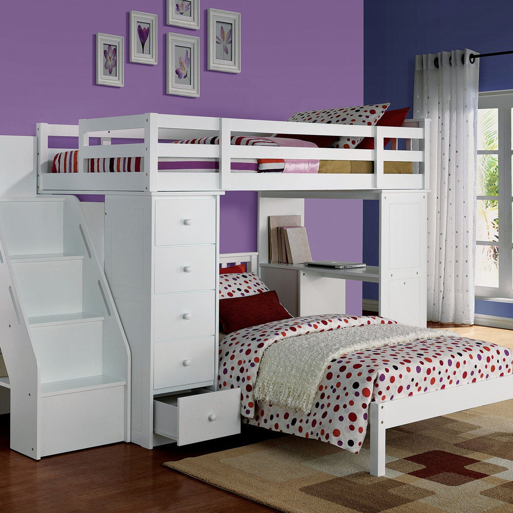 - Equipped with a full-length guardrail on the top bunk and a reversible ladder for flexible access