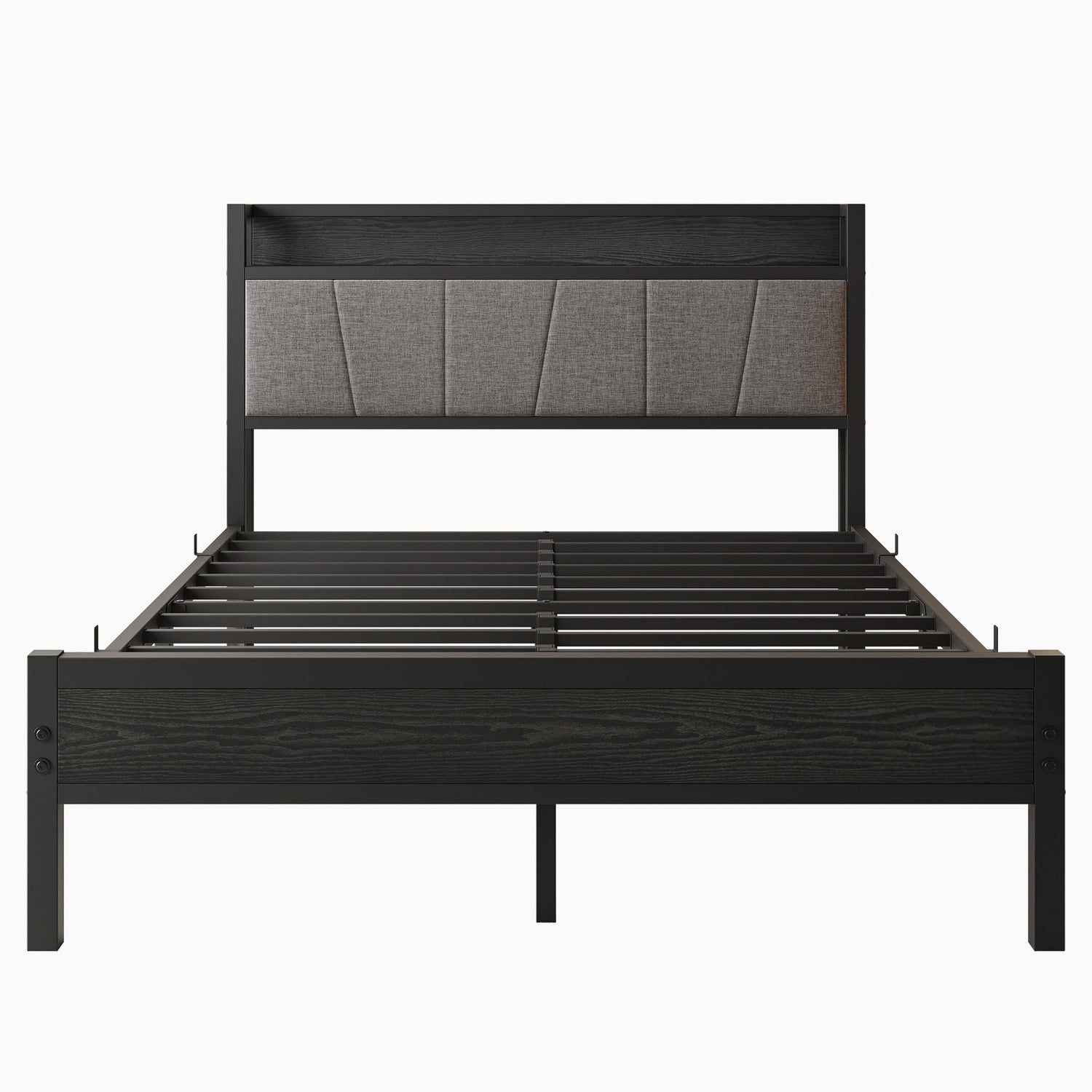 - Built-in headboard includes 2 power outlets and 2 USB ports for convenient device charging.