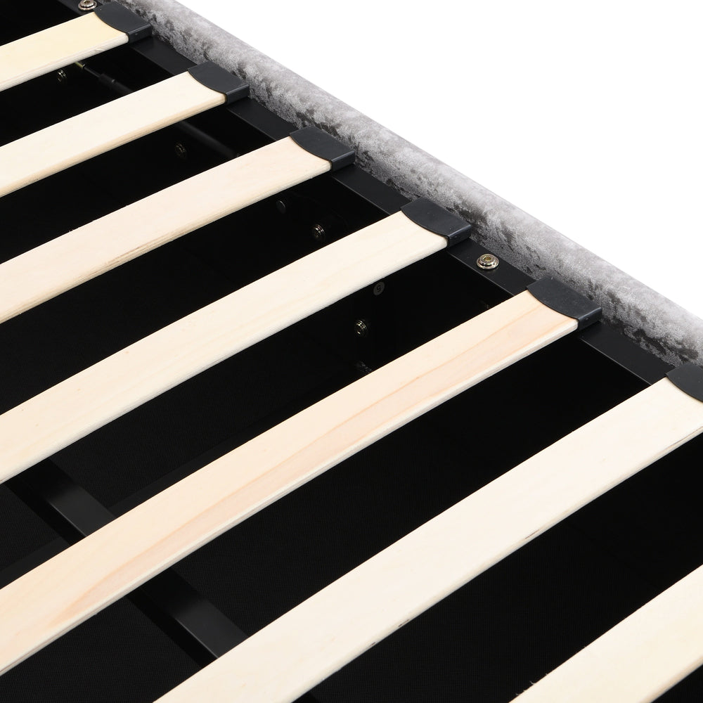 - Fabric-wrapped solid wood and metal frame