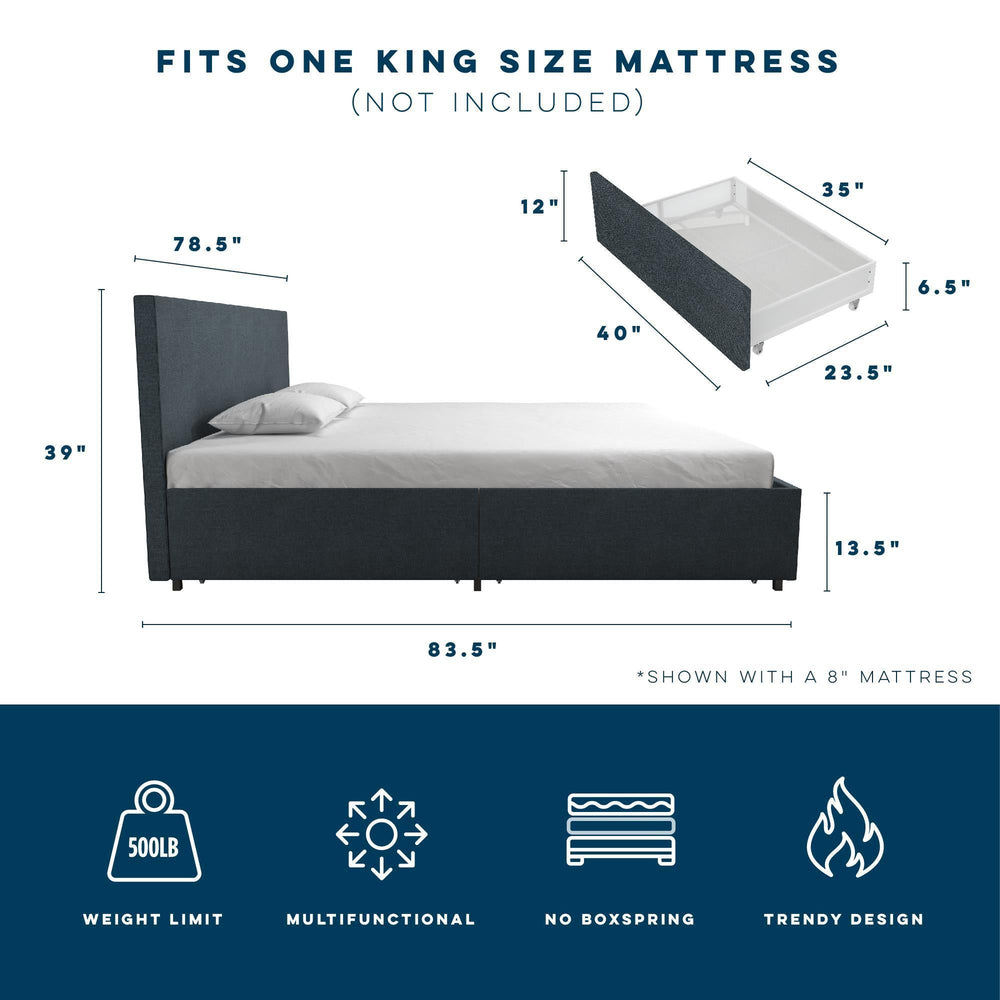 Kelly - King Upholstered Bed With Storage - Navy