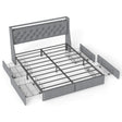 Queen Platform Bed Frame With RGB LED & Charging Station, Storage Headboard - Gray