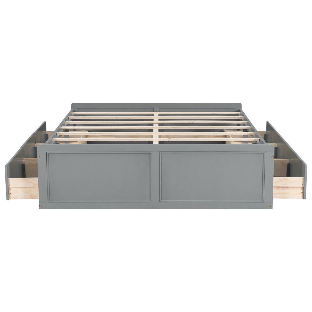 This queen size platform bed frame combines style and functionality, ideal for bedrooms where space efficiency and elegant design are desired. It provides sturdy mattress support without the need for a box spring, fitting both modern and traditional interiors.