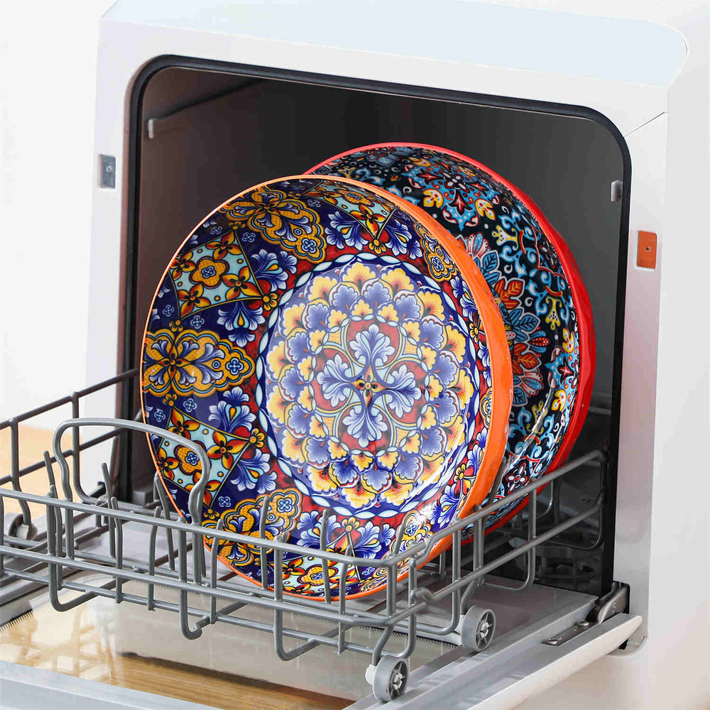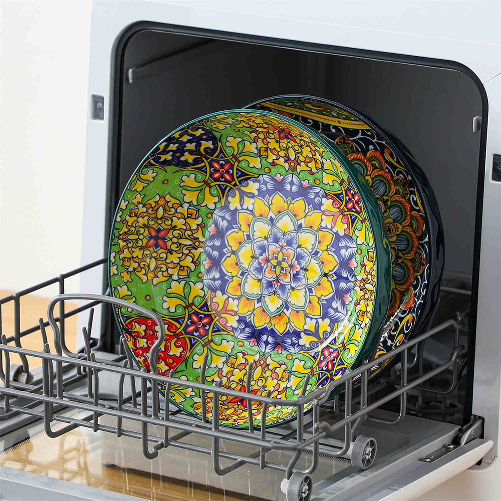Vibrant colors and intricate floral designs make this set of two serving bowls a stunning addition to your table. Available in bold red and orange or rich forest and dark green, these bowls feature a spacious 10” diameter and 78oz capacity, ideal for salads, pasta, or side dishes at family meals or festive gatherings. The subtle diamond texture adds a refined touch, while the durable porcelain construction ensures they’re microwave, oven, and dishwasher safe. Perfect for bringing style and functionality to any occasion.
