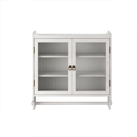 Vintage Double Door Wall Cabinet With Three Tiers Storage And Towel Rack - White Washed