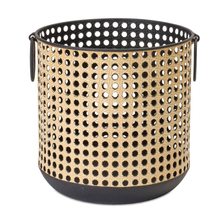 Punched Metal Candle Holder with Rattan Design (Set of 2)