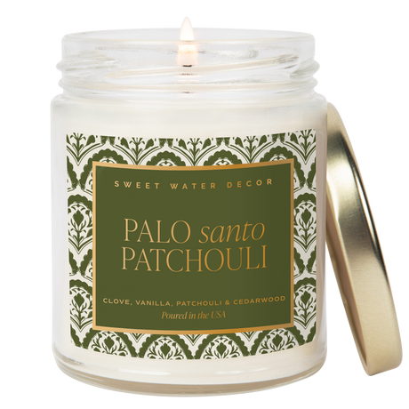 Palo Santo Patchouli Soy Candle - Clear Patterned Jar - 9 oz
