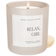 Release tension and stress with our Relax, Girl soy candle. It combines soothing notes of eucalyptus and refreshing peppermint with clove, and finishes with a warm cedar, patchouli and vanilla base. Classic, fresh and invigorating, it transports you to a space of calm and restorative energy. Sit back and relax with our Relaxation fragrance.