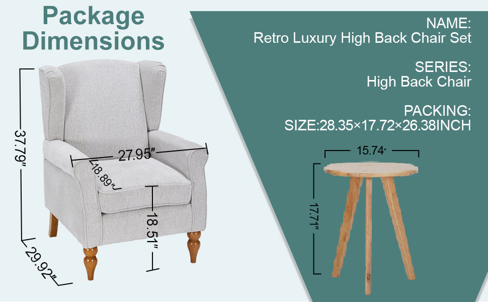 This classic coffee table and armchair set is designed to enhance your living room, study, bedroom, or office with vintage elegance and functional comfort. The wing-back chair promotes spinal support while the coffee table adds traditional style to your space.