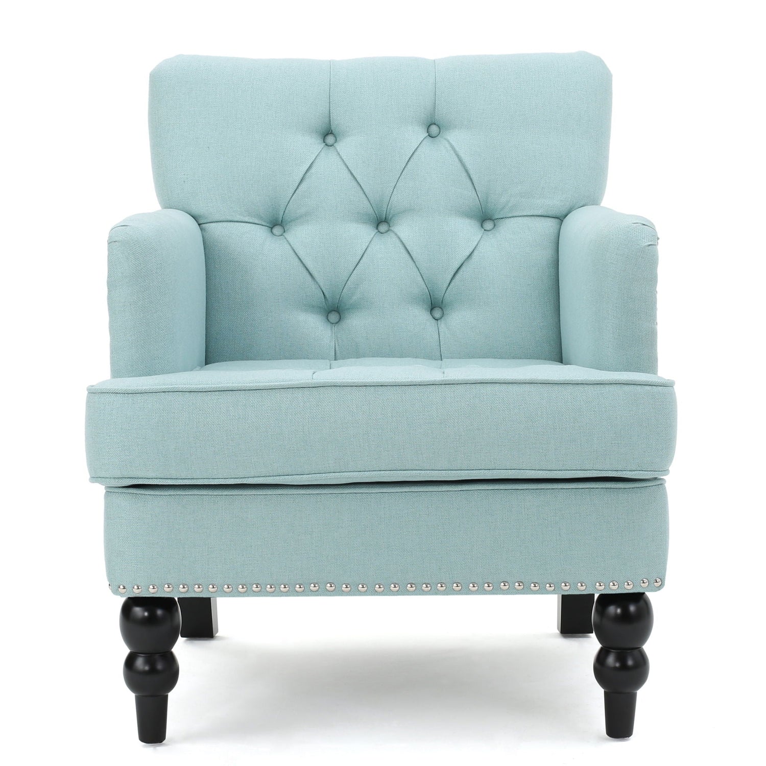 - CONTEMPORARY DESIGN: Our club chair blends contemporary design with comfort, featuring button-tufted stitching, nailhead trim, and turned legs. With a minimalistic yet refined style, it adds modern elegance to any space