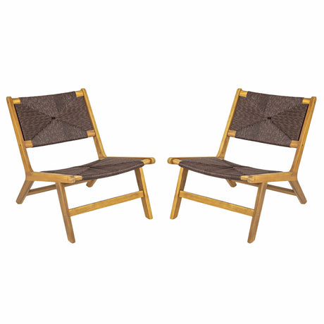 Acacia Wood Outdoor Armless Lounge Chair - Teak Set of 2