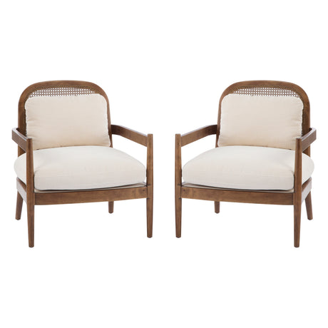 Elliston Rattan Backrest Solid Wood Accent Chair with Cushions - Set of 2