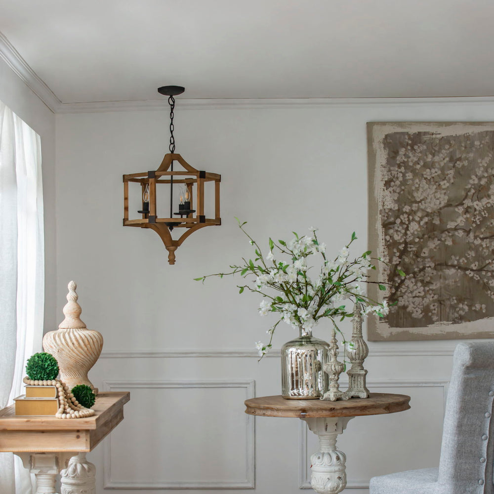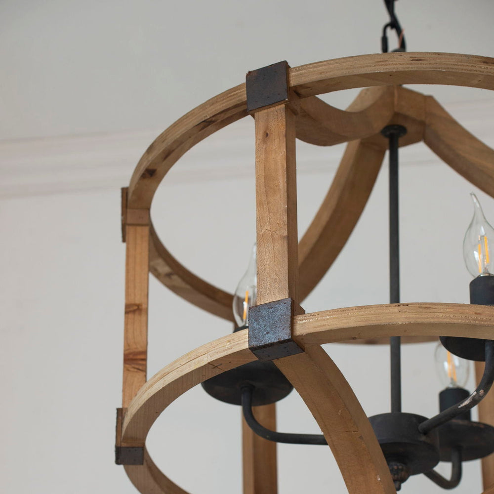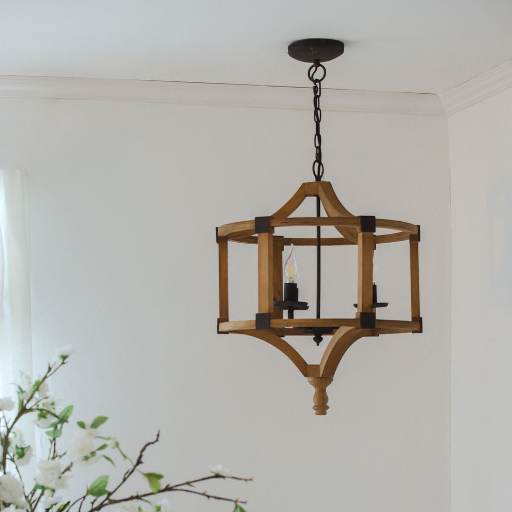 This 3 Light Wood Drum Chandelier features a simple and elegant design suitable for kitchens or dining areas. It combines function and style to provide ample lighting with a refined aesthetic.