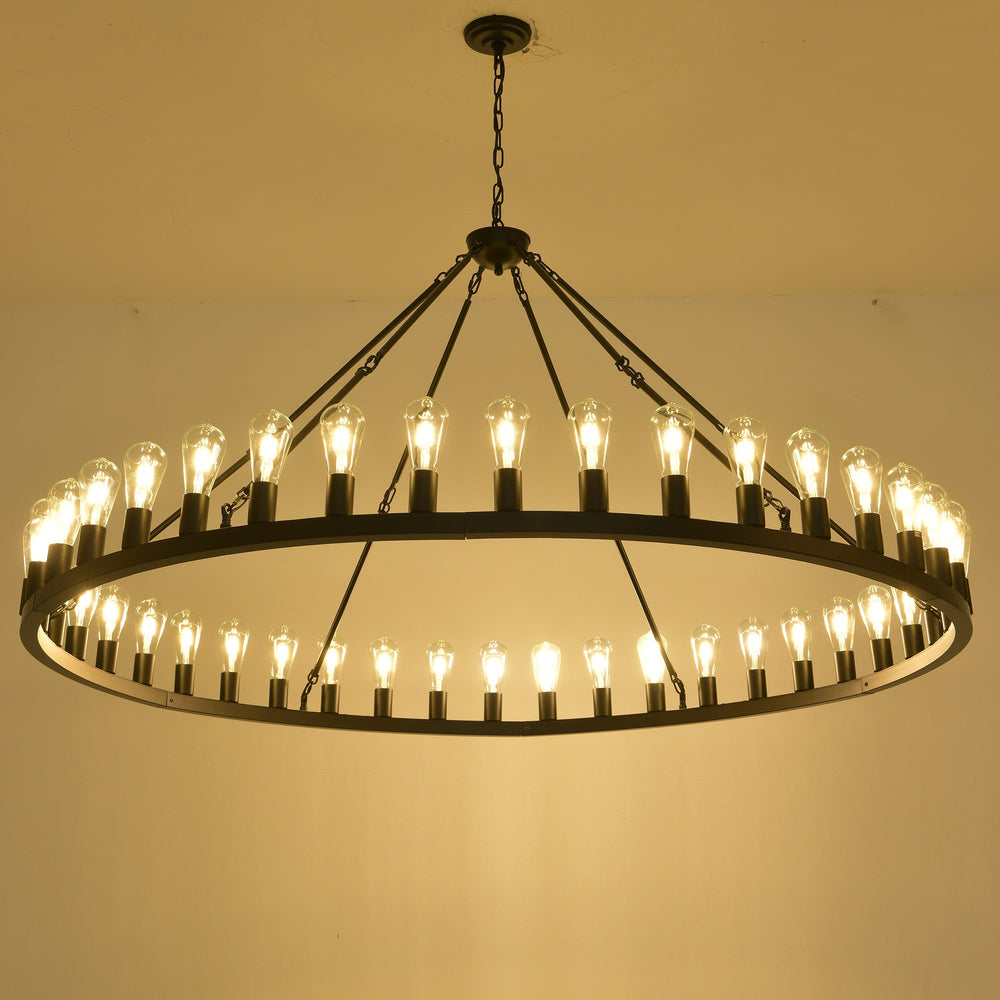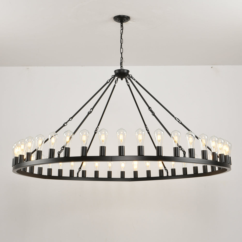 64 Inch Matte Black Wagon Wheel Chandelier with 30 Lights