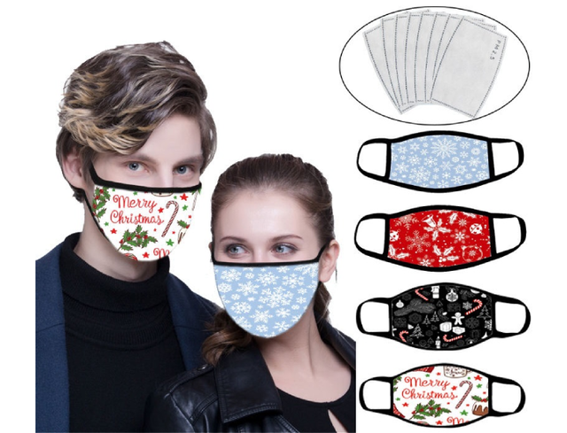 - Reusable Washable Christmas-Themed Face Masks with Filters (4-Pack)