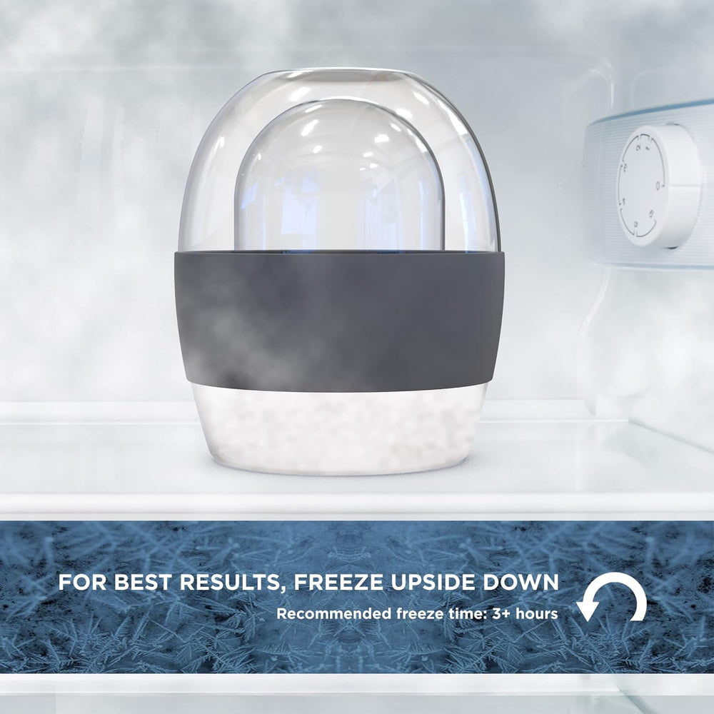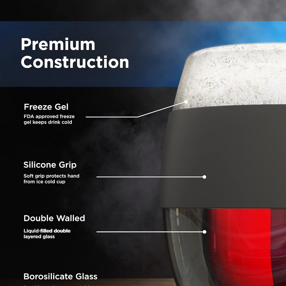 - Double walled glass with built-in freezer gel chills her wine in seconds. (Recommended freeze time: 3+ hours)