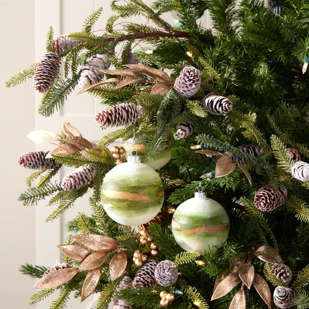 Add a touch of sophistication to your holiday decor with this set of Beaded Glass Ball Ornaments. Featuring a timeless round shape, these ornaments showcase elegant beaded accents and chic metallic silver touches against a wintry green backdrop. The delicate string hanger and silver ornament cap enhance their refined look, making them perfect for Christmas trees, wreaths, and garlands. Whether you’re creating a classic holiday display or a modern winter wonderland, these ornaments bring an effortless touch of elegance to your seasonal decorations.